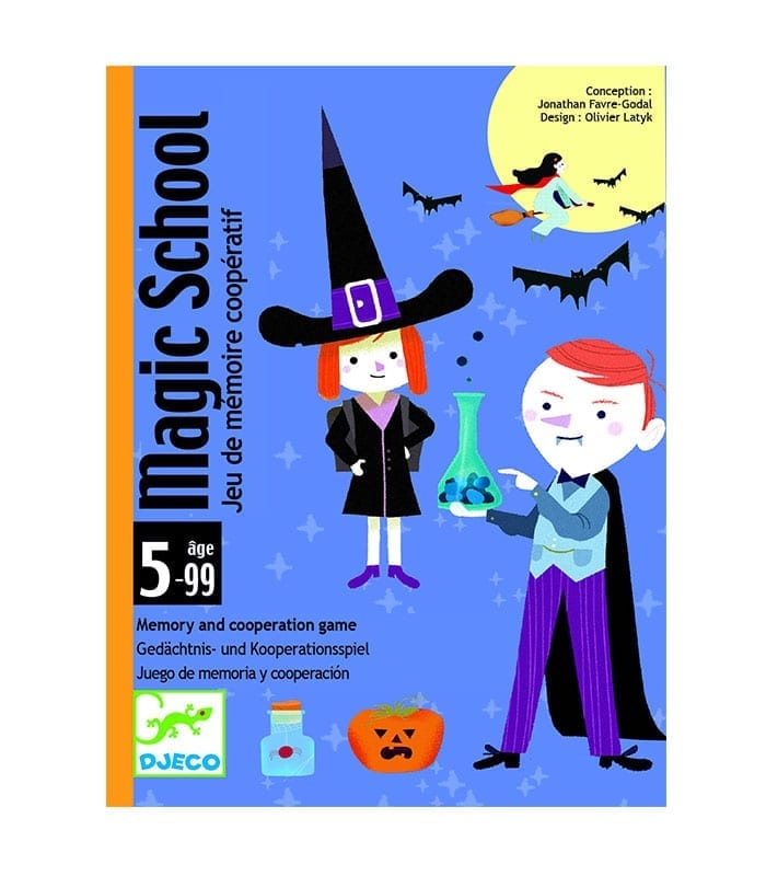בית ספר לקוסמים – אומנם זה משחק קלפים ולא משחק קופסה, אבל כיוון שהוא שיתופי ואין הרבה משחקים שיתופיים אני בוחרת לשים אותו כאן. משחק חמוד מאוד, מוגדר מגיל 5 ואכן לדעתי מתאים מגיל זה, אולי קצת קודם. זהו משחק זיכרון עם מטרה משותפת, המטרה המשותפת היא להתאים את האביזר לקוסם המתאים, כל פעם תור מישהו אחר אך עוזרים זה לזה ובסוף הספירה והתוצאה הן ביחד.