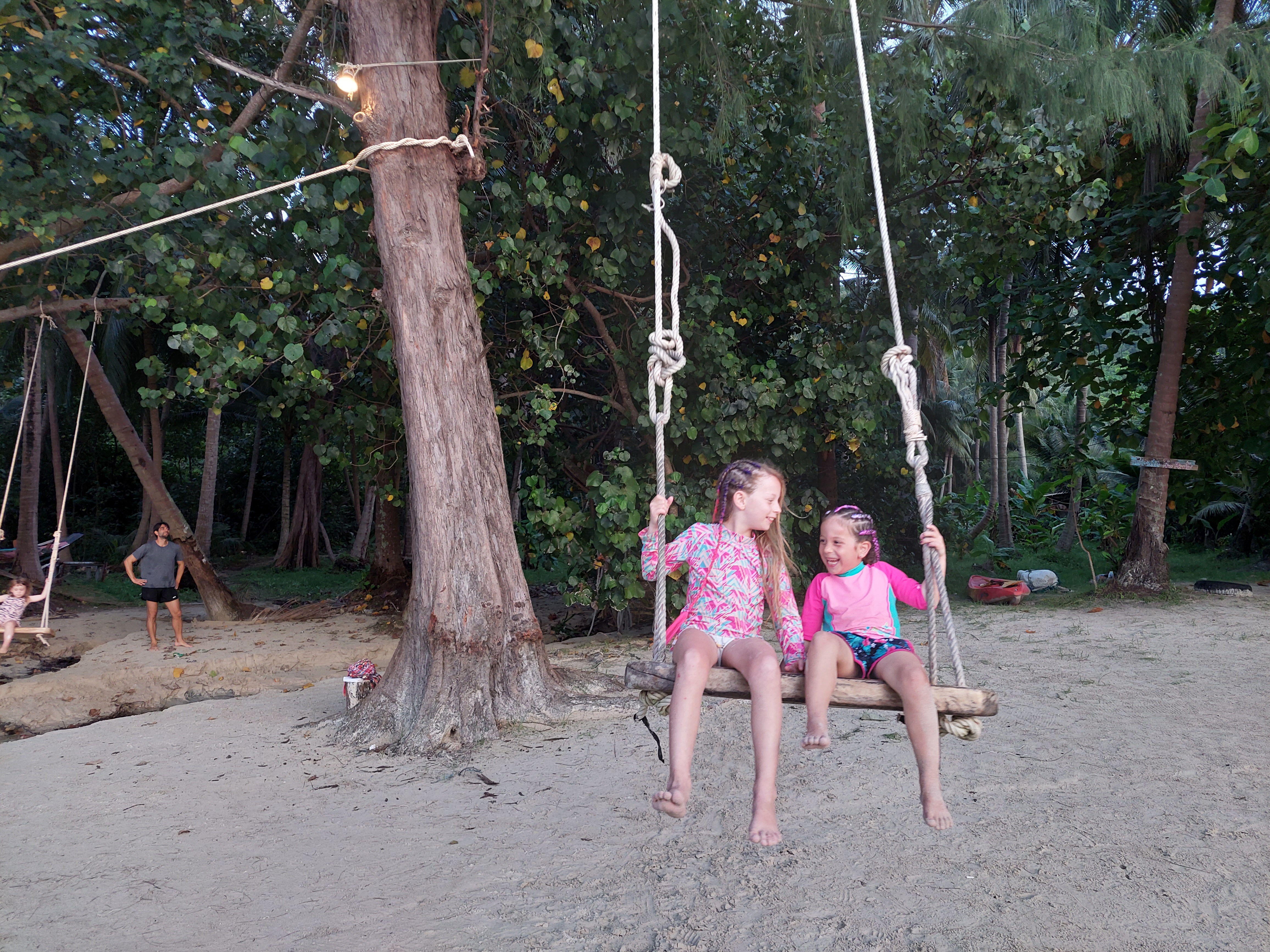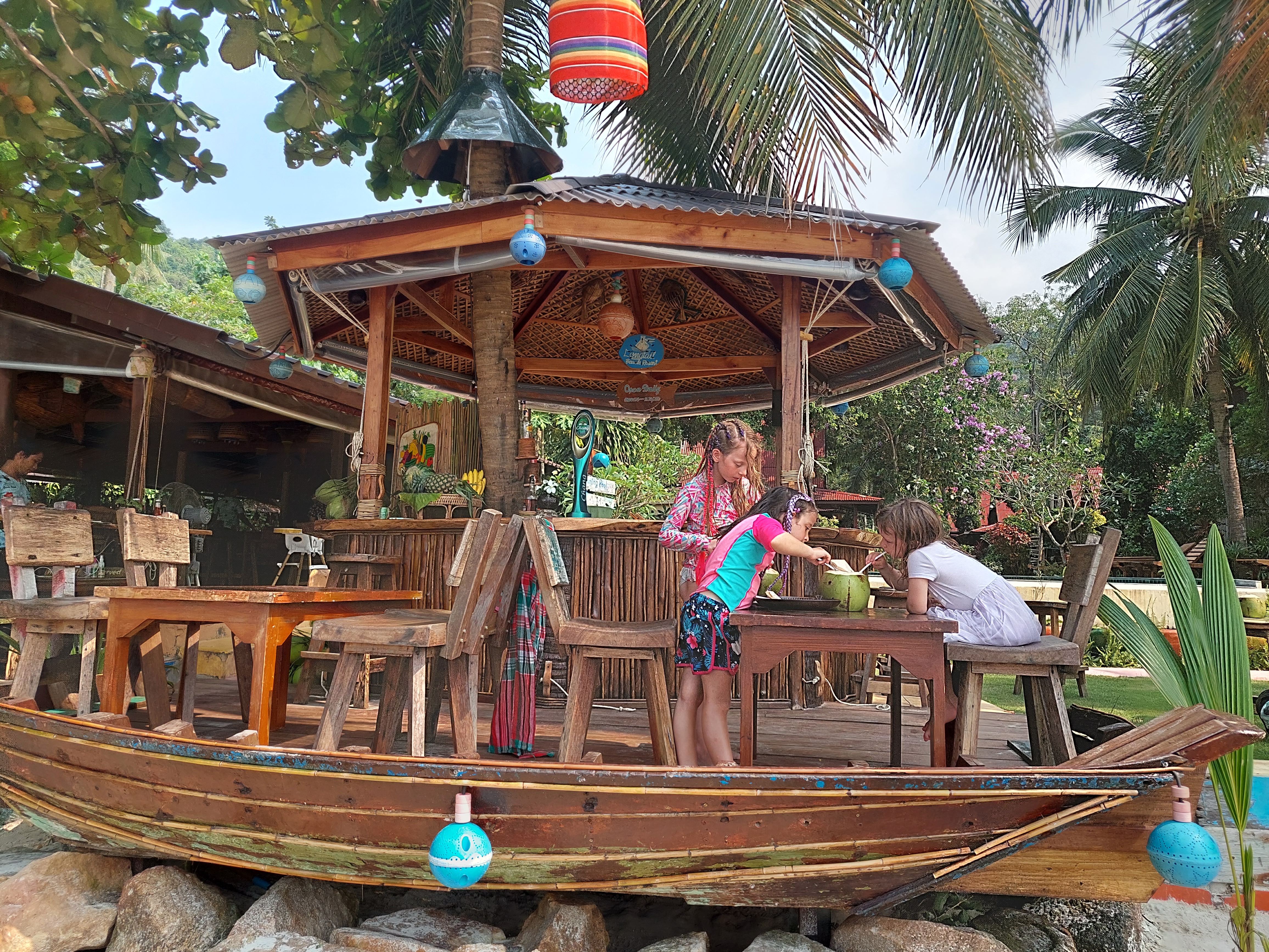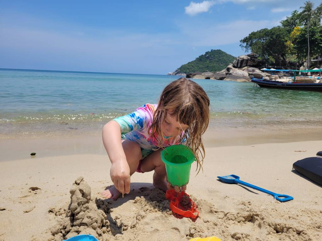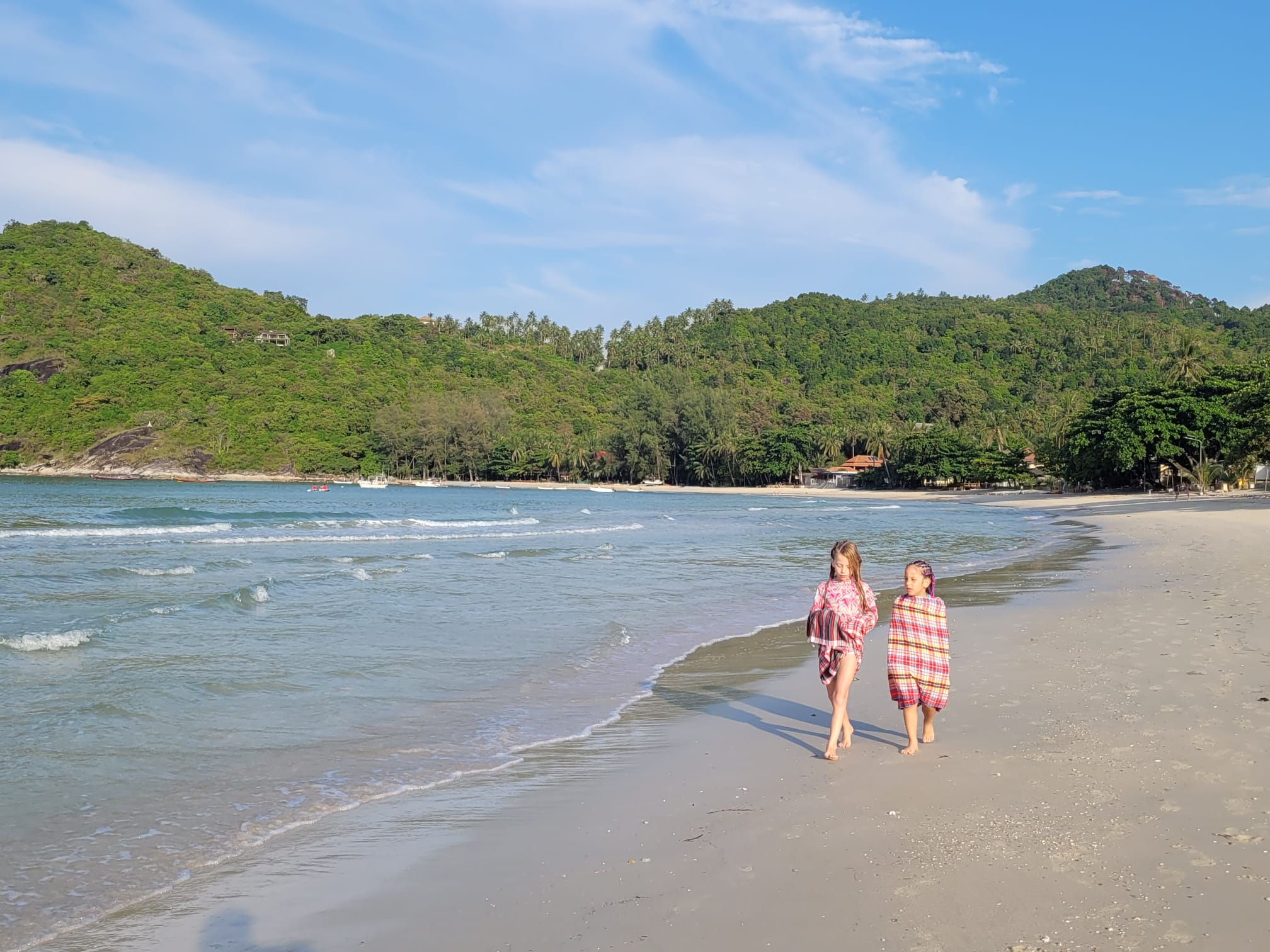 אז מה הבנתי? שכמה שאנחנו אוהבים לטייל, עם ילדות קטנות מתאים לנו מינימום ענייני לוגיסטיקה, תנועה ומעברים. כמה שיותר שהות במקום אחד שמספק הכל, בלי אטרקציות, טיולים, נסיעות, אריזות, מציאת אוכל מתאים וכו'… מה מתאים לנו? תאילנד. וככה שנה אחרי הטיסה לשוויץ מצאנו את עצמנו בטיסה לתאילנד עם פעוטה בת כמעט שנתיים (ניצלנו את זה שעוד לא משלמים עליה כרטיס טיסה) וילדה בת שלוש וחצי. היעד היה בעיקר קופנגן וקצת קוסמוי.