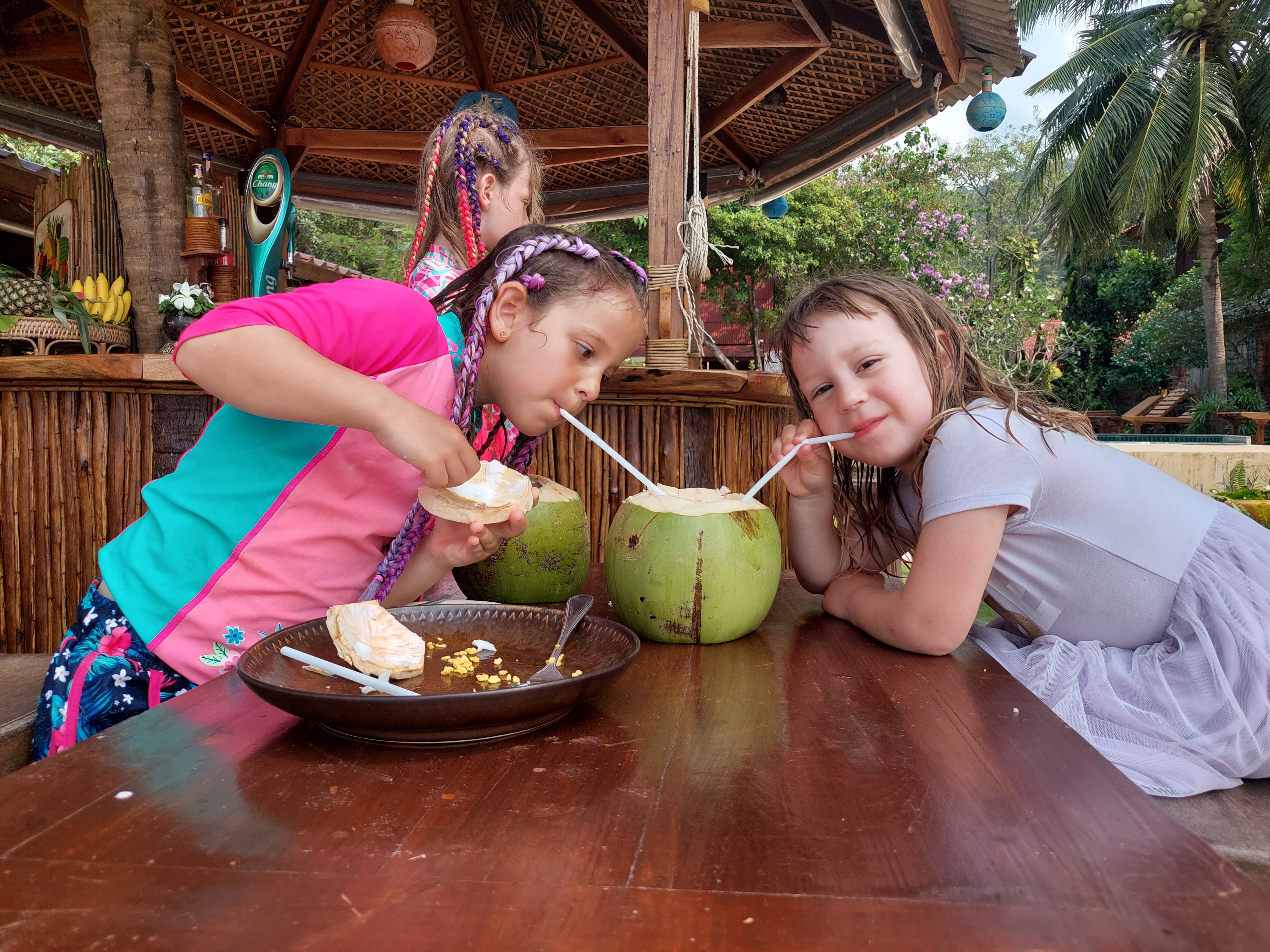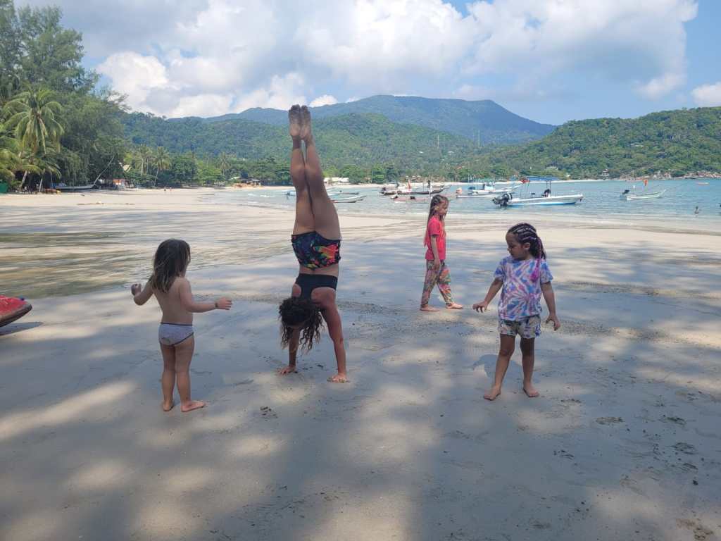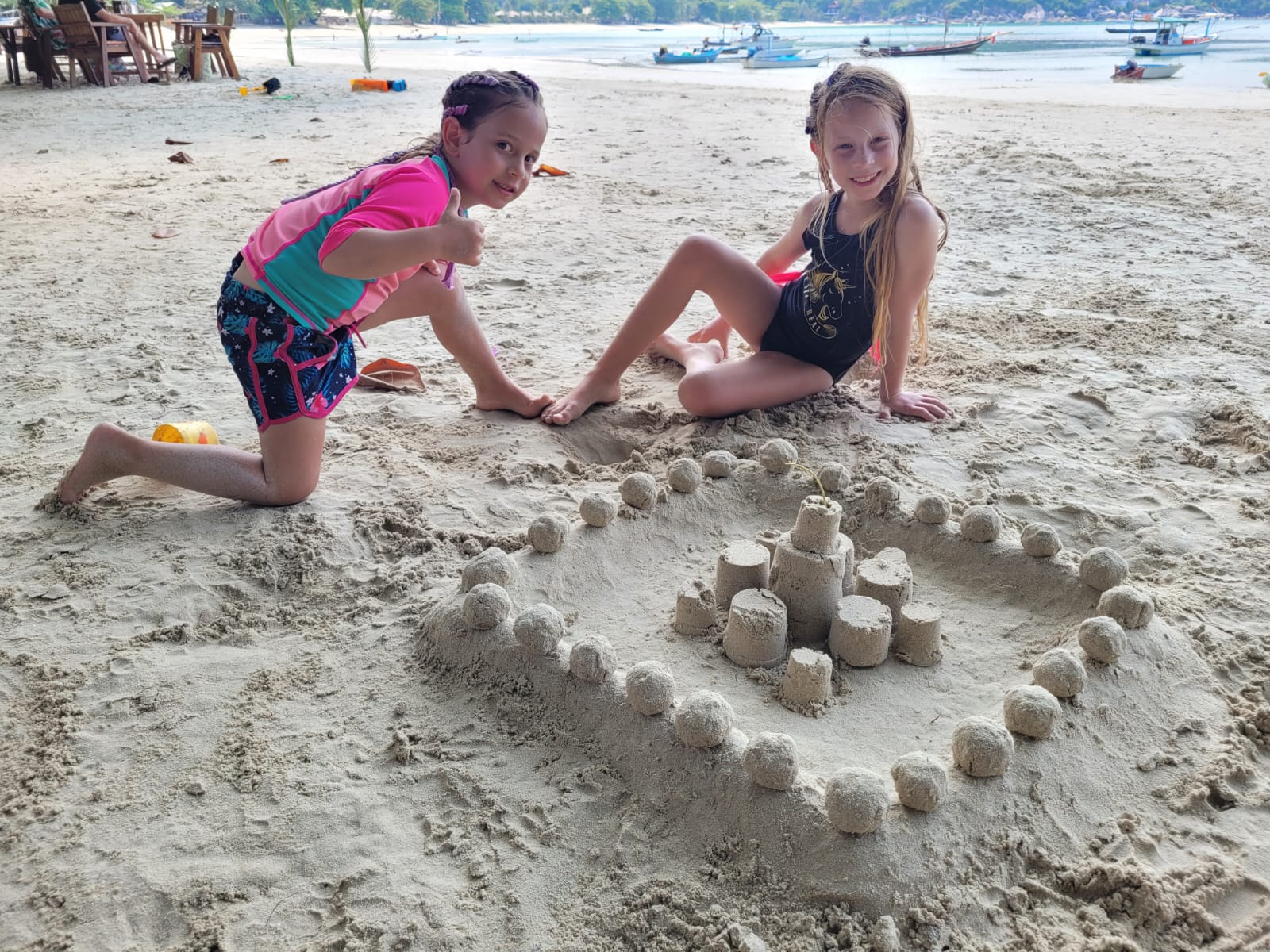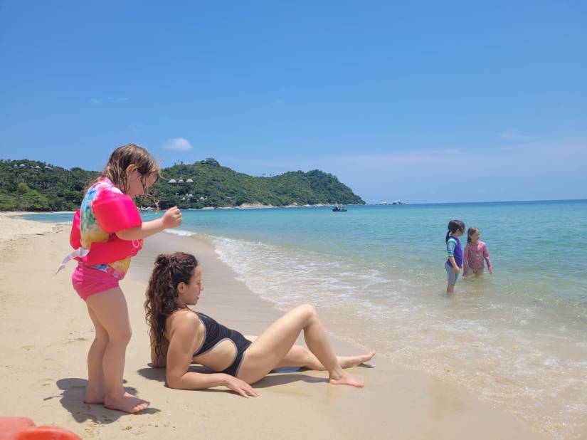 אז מה הבנתי? שכמה שאנחנו אוהבים לטייל, עם ילדות קטנות מתאים לנו מינימום ענייני לוגיסטיקה, תנועה ומעברים. כמה שיותר שהות במקום אחד שמספק הכל, בלי אטרקציות, טיולים, נסיעות, אריזות, מציאת אוכל מתאים וכו'… מה מתאים לנו? תאילנד. וככה שנה אחרי הטיסה לשוויץ מצאנו את עצמנו בטיסה לתאילנד עם פעוטה בת כמעט שנתיים (ניצלנו את זה שעוד לא משלמים עליה כרטיס טיסה) וילדה בת שלוש וחצי. היעד היה בעיקר קופנגן וקצת קוסמוי.