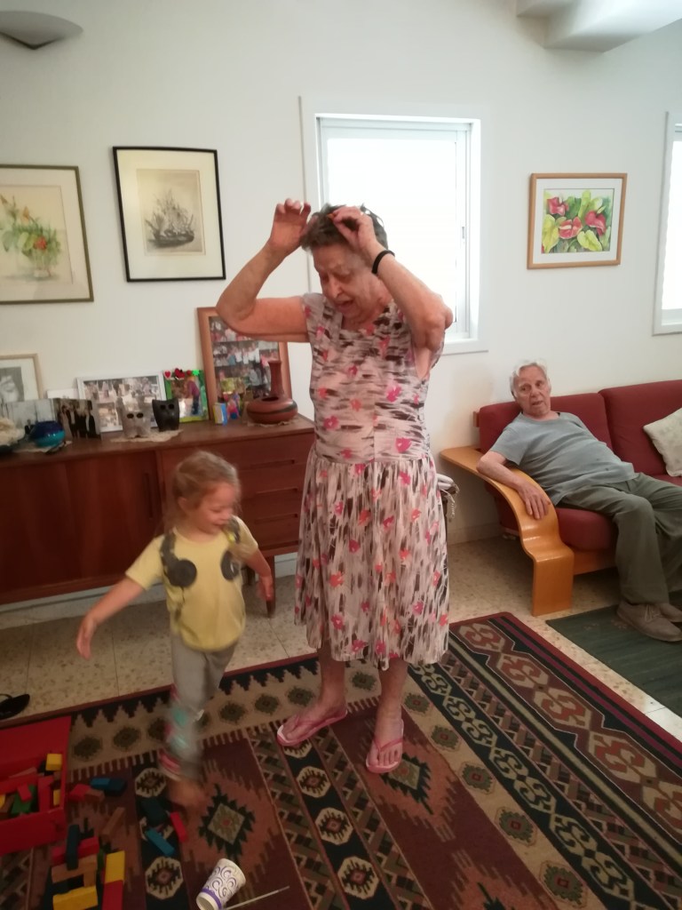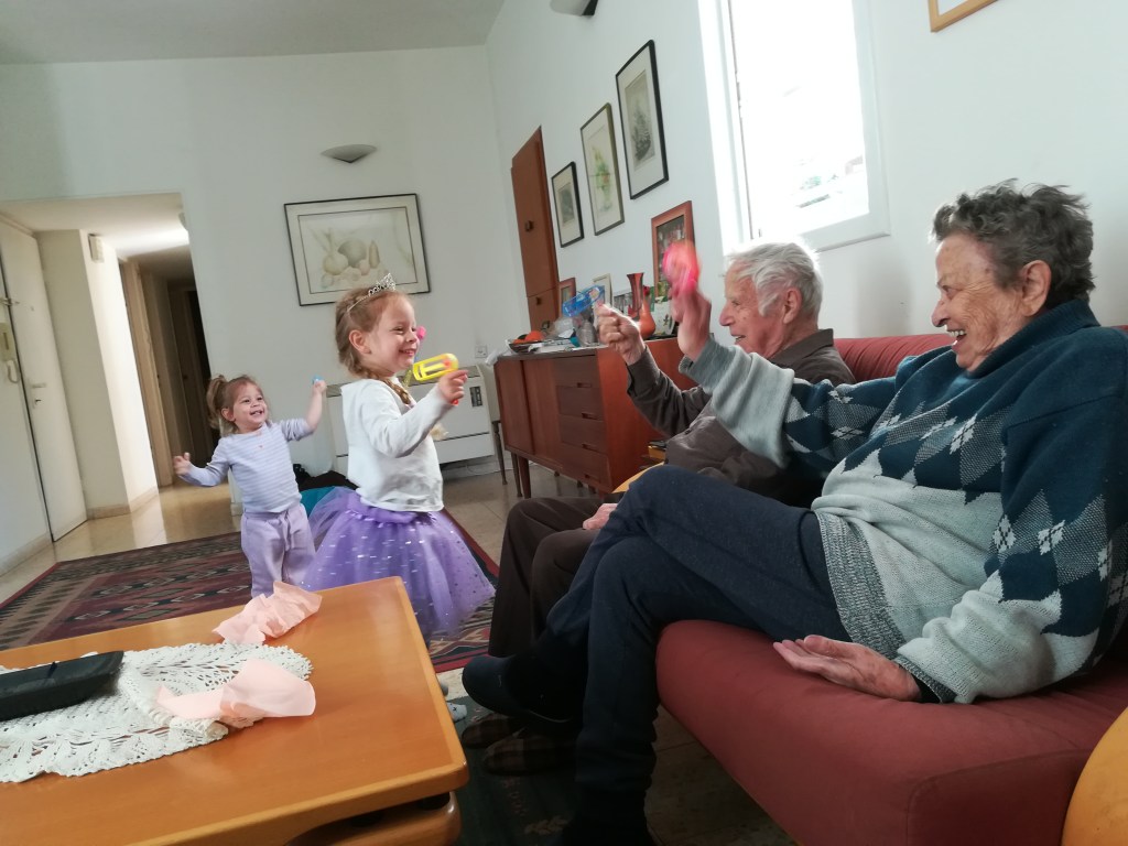 כשאלה ואורי היו קטנות הייתי נוסעת אליהם כמעט כל שבוע, הם כבר היו מבוגרים מאוד אבל חזקים ועם המון נתינה. סבתא הייתה מבשלת את האוכל הטעים שלה, הם היו מקריאים להן סיפורים, משחקים, רוקדים, מקשיבים, מספרים, והילדות מאוד מאוד מחוברות אליהם. בהמשך סבתא הרגישה כבר פחות טוב ולא יכולנו לבוא לימים שלמים, סבתא כבר לא בישלה, אבל המשכנו לבוא עד יומה האחרון ועדיין ממשיכות לבוא לבקר את סבא האהוב. ומה שמדהים, שהבנות כל כך אוהבות להיות שם, הן תמיד רוצות לבוא אליהם ,הן מאוד מחוברות אליהם ואוהבות אותם.