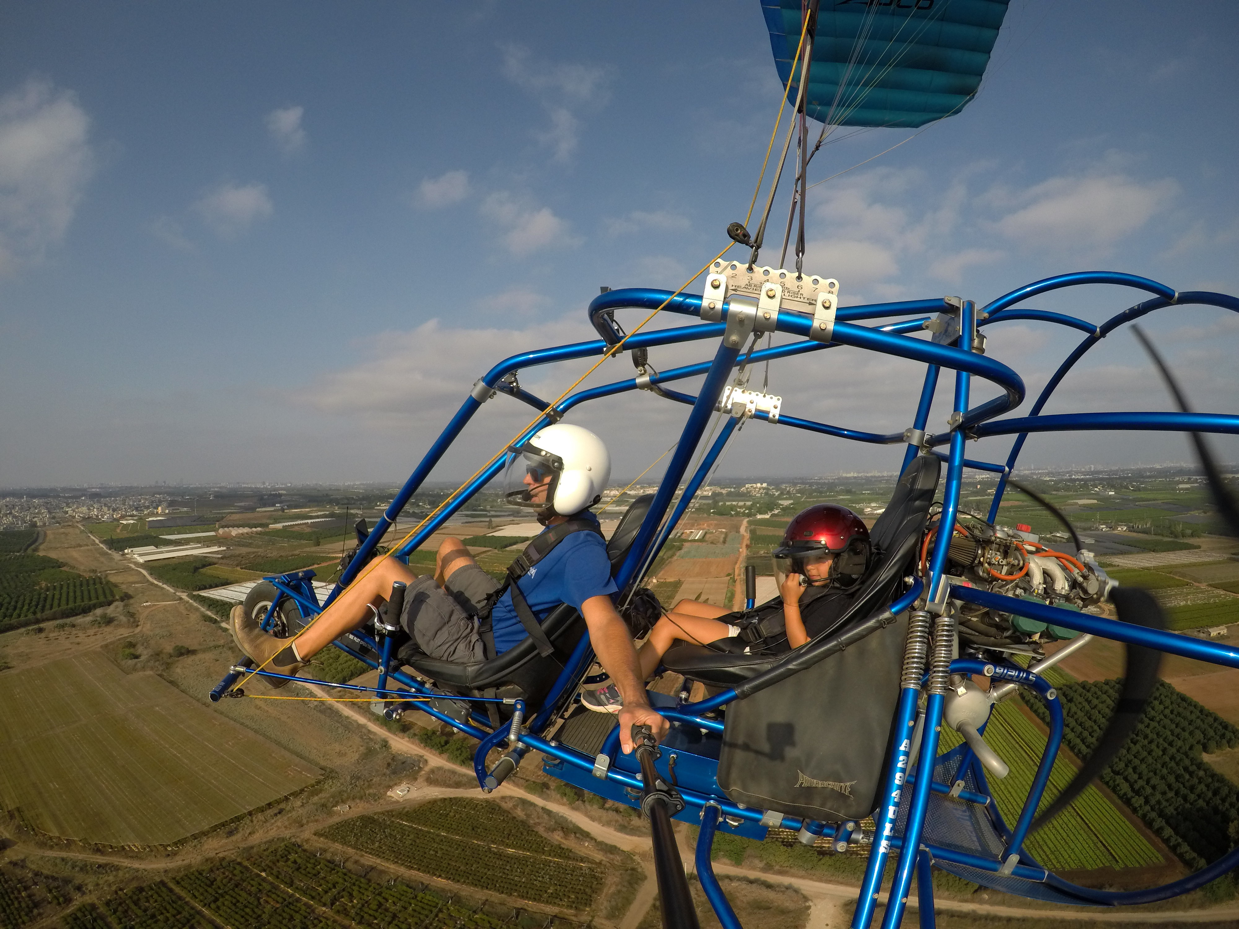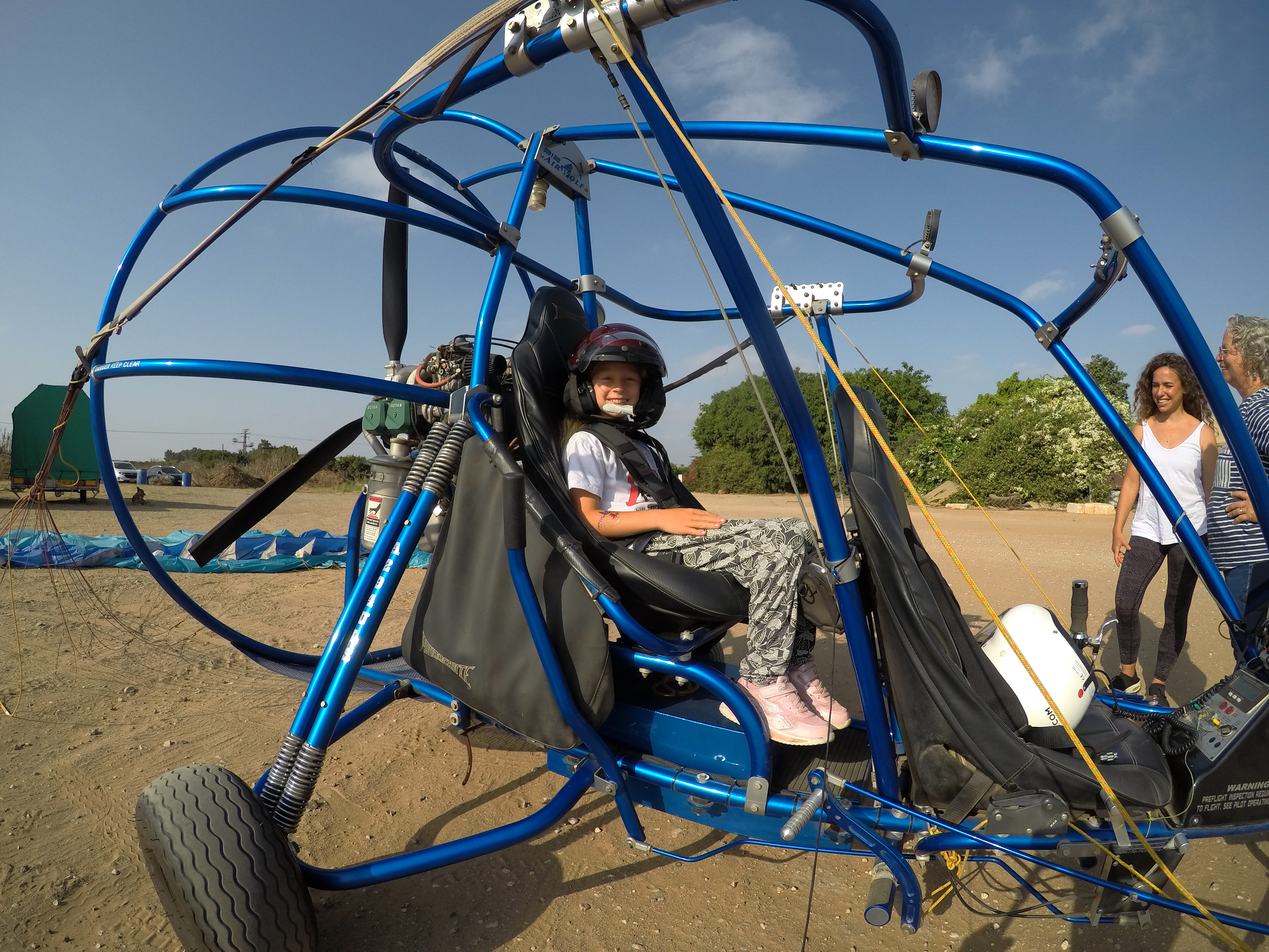 על הבוקר הערנו אותן ויצאנו לשם בהתרגשות רבה. שרון המקסים קיבל את פנינו, התחבר לילדות, הסביר הכל בנינוחות, רוגע, הומור, חיוך, אדיבות ולאחר מכן המריא עם הילדות, כל אחת למשך 20 דקות טיסה, כולל צילום של כל החוויה המדהימה. העלות היא 450 לטיסה של 20 דקות ללא צילום, 600 כולל צילום. בעיניי שווה את המחיר.