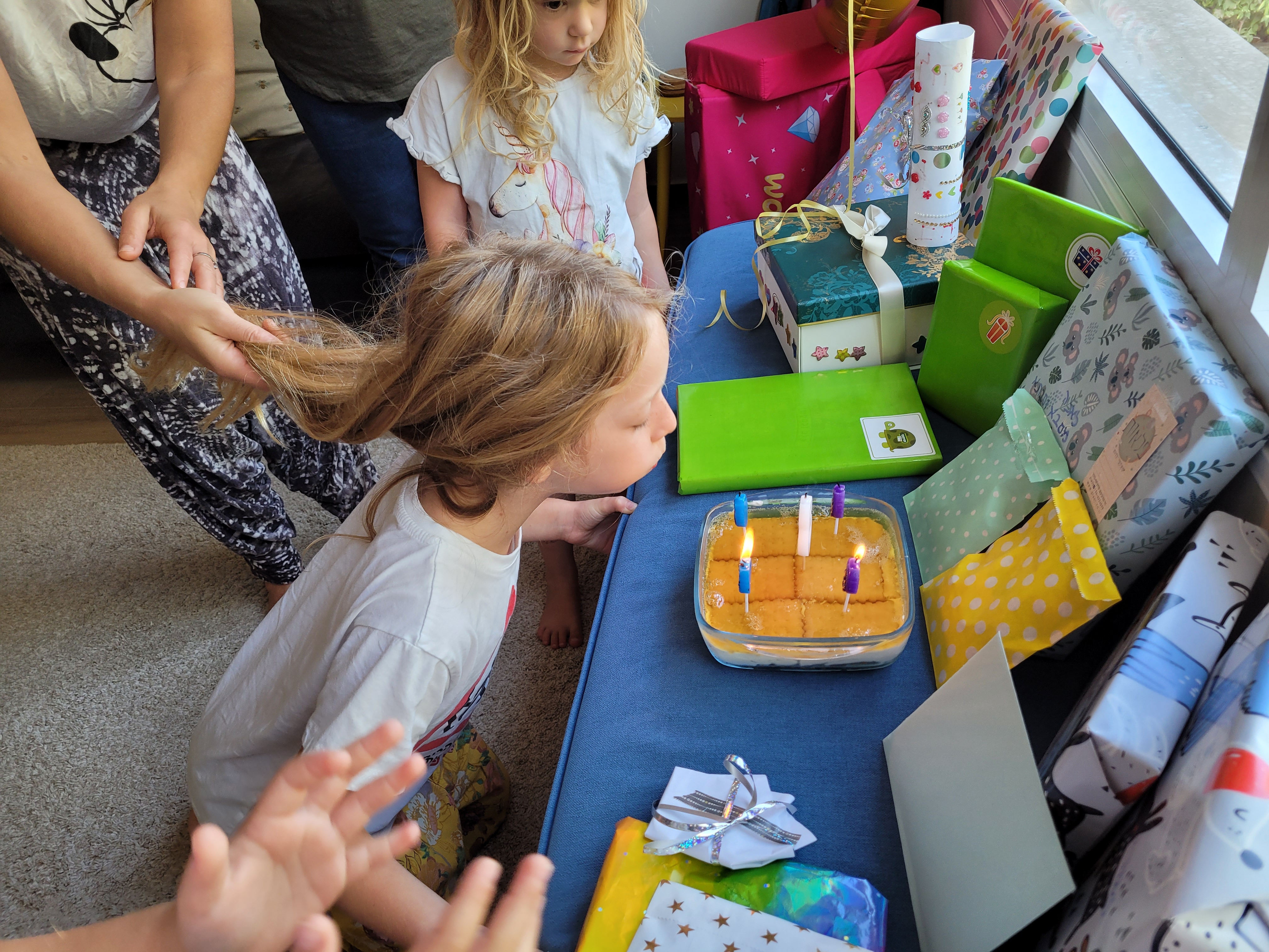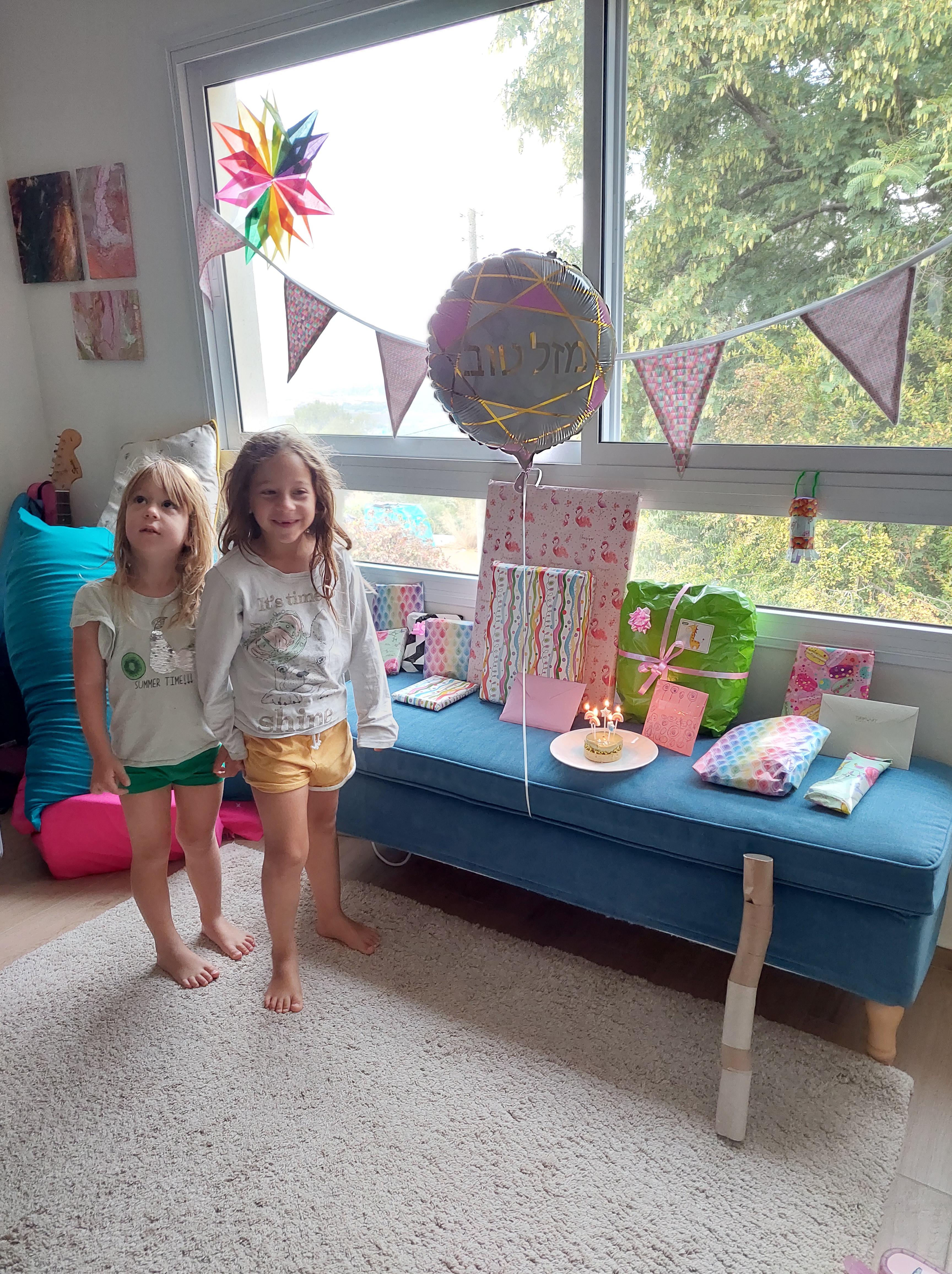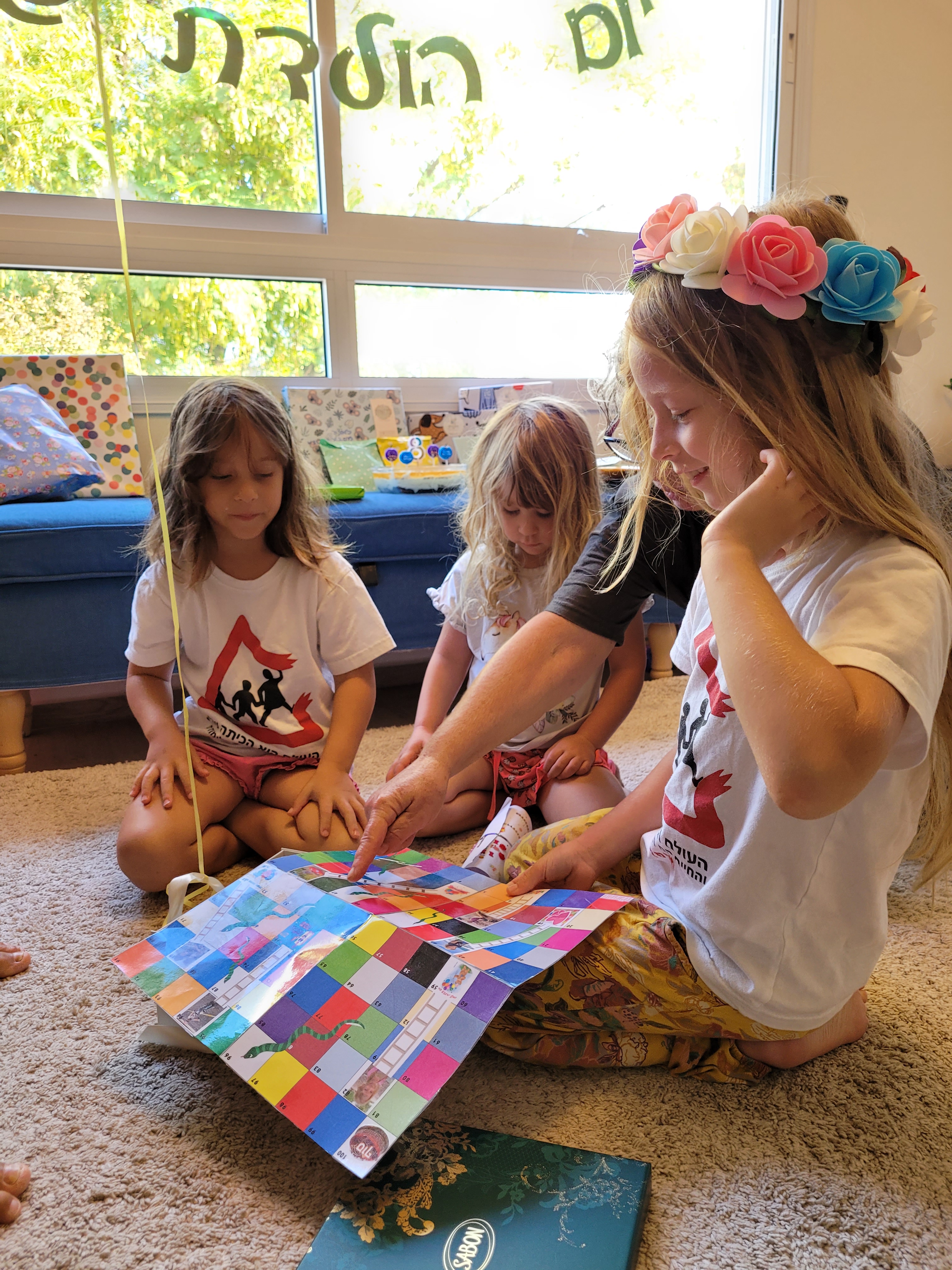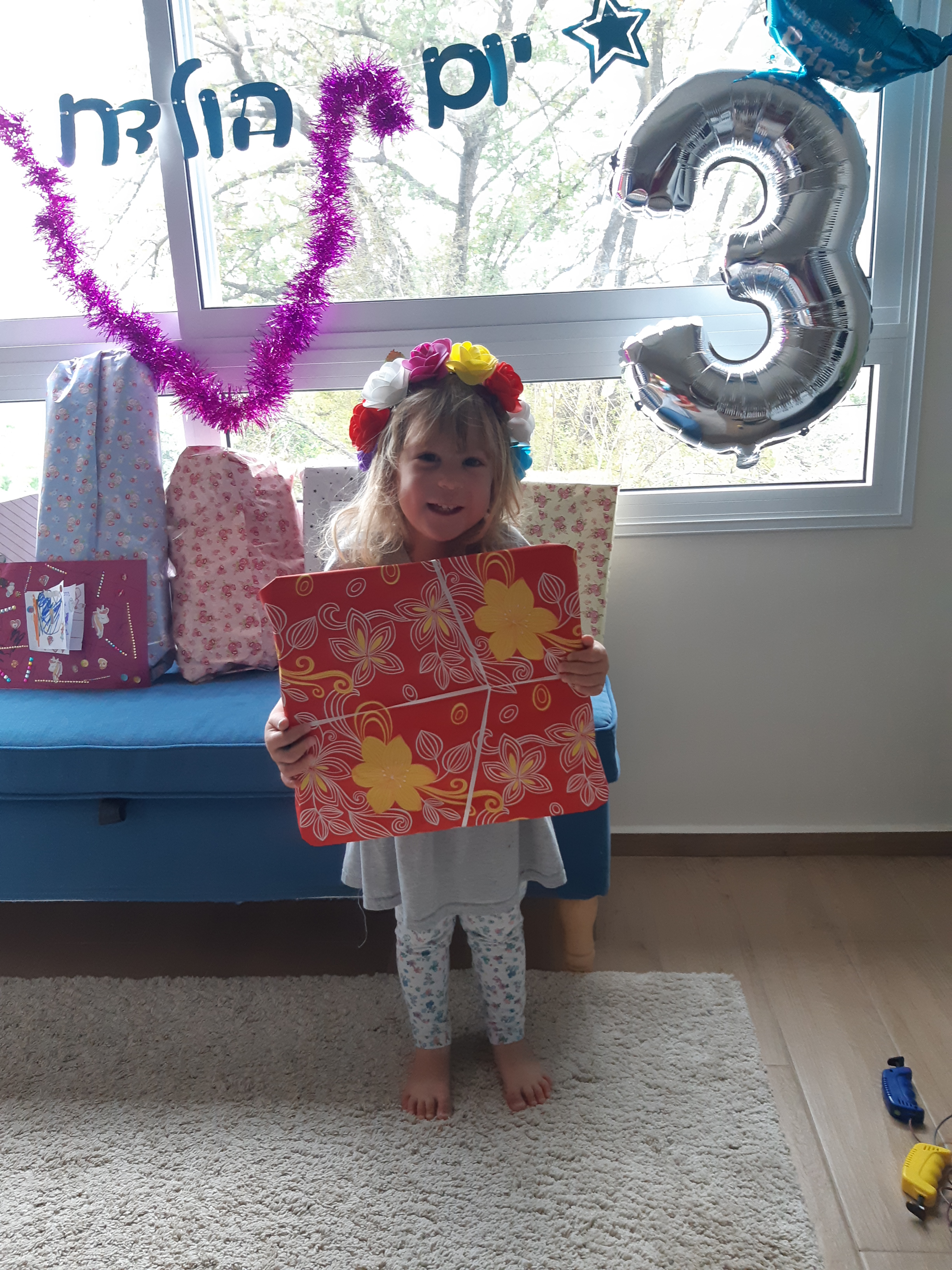 כשילדת יום ההולדת קמה כולם הולכים יחד לסלון, שרים, רוקדים, קוראים את הברכות ופותחים מתנות. לפעמים אני מארגנת גם משחק יום הולדת כגון חפש את המטמון עם כל מיני משימות ומשחקים, או חבילה עוברת.