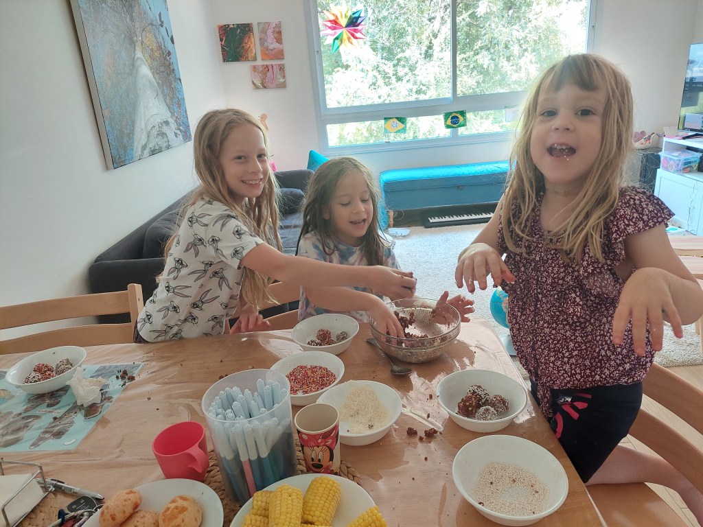 סיפרתי להן שביערות הגשם בברזיל גדלים המון עצי קקאו וששוקולד מפיקים מפולים שיש בתוך פרי הקקאו. הראיתי להן סרטון על תהליך הכנת השוקולד, ממש מהקטיף שלו מהעצים. הן התעניינו מאוד וגם פתאום הבינו את המשמעות שיש לשוקולד שהן קונות ואוכלות. כמה אנשים עובדים בשביל השוקולד שכל כך מובן מאליו עבורן, הן גם שאלו מי מקבל מזה את הכסף אם השוקולד עובר כל כך הרבה ידיים ואנשים עובדים, פתאום היה להן יותר ערך לשוקולד והבנה מאיפה הוא מגיע. לאחר הסרטון הראיתי להן את אבקת הקקאו והכנו כדורי שוקולד.