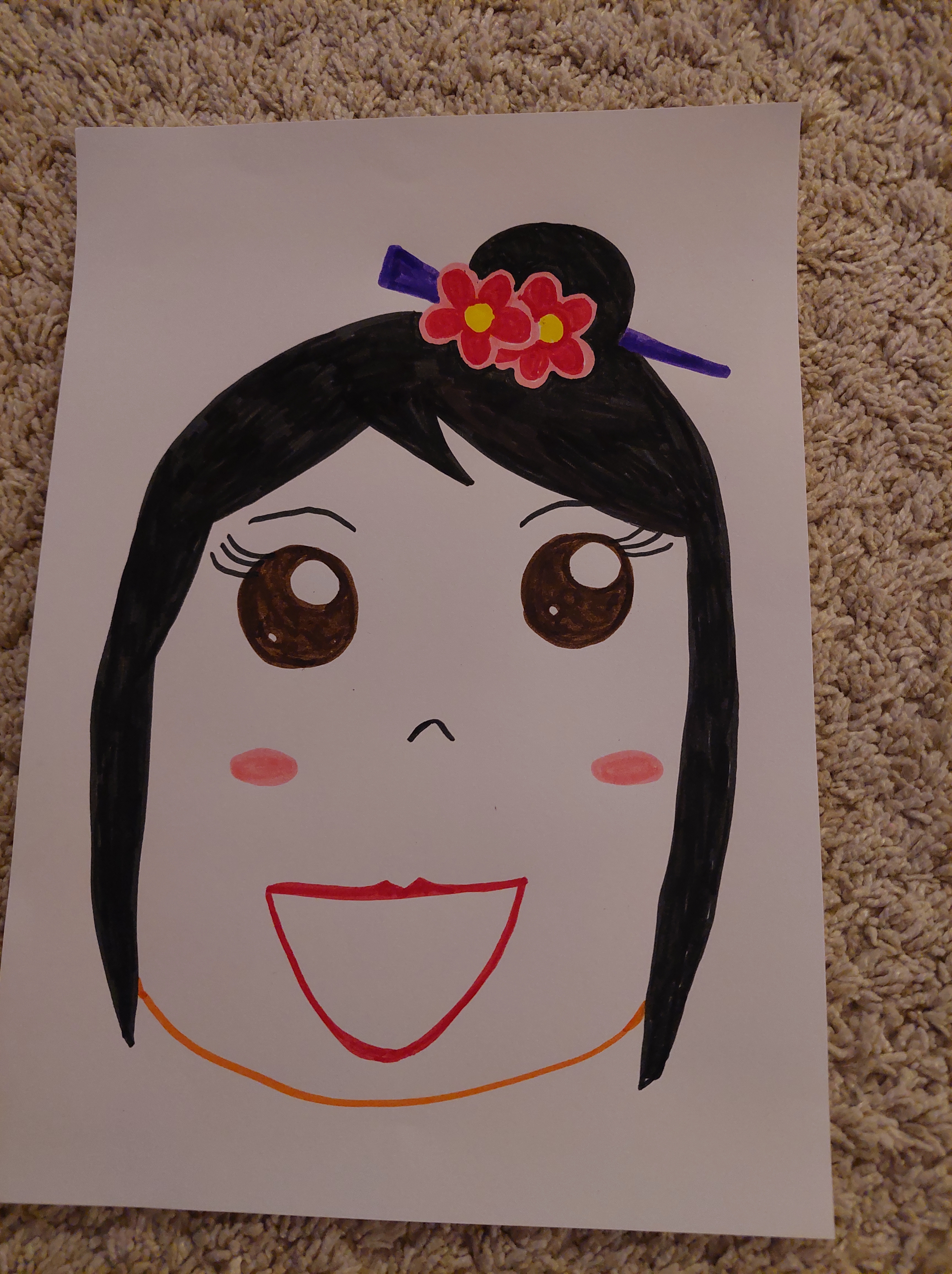 אז בבוקר הכרנו את המדינה, הדגל, ציירנו, למדנו שיפן מכונה גם ארץ השמש העולה וראינו שיש קשר בין השם לדגל. למדנו מילים ביפנית והתחלנו את המשחק. בתחילת המשחק הן קיבלו מכתב מקיסר יפן שמבקש את עזרתן במציאת סיכת הקיסר שאיבד, על גבי המכתב הופיע סמל הקיסר שנמצא על הסיכה.