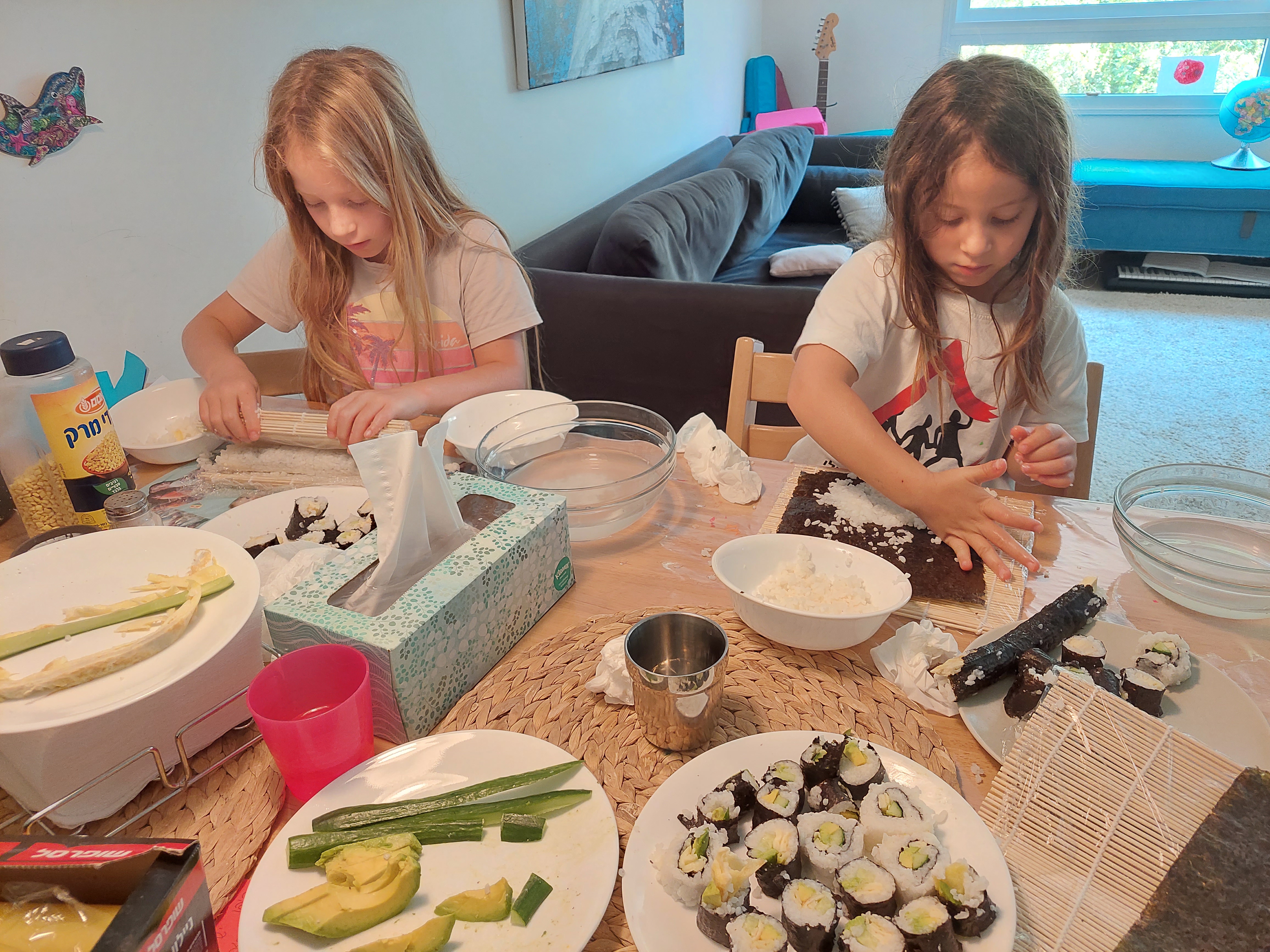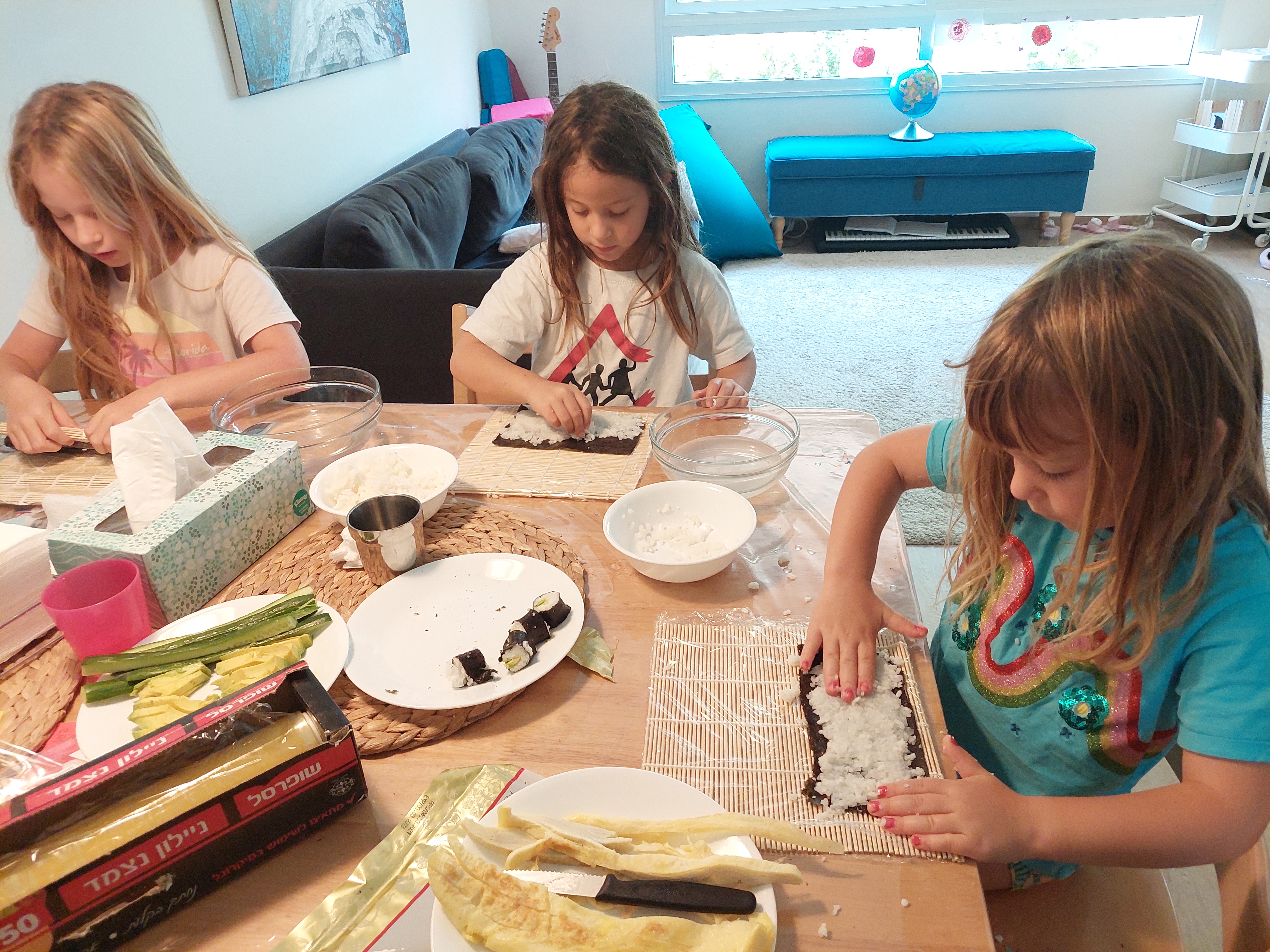 הבאתי להן מצרכים שהכנתי מראש להכנת סושי- אצות, אורז, ירקות, חביתה יפנית, מחצלות. הכנו סושי, שזו חוויה נהדרת בפני עצמה. לאחר מכן הראיתי להן מצגת עם תמונות של קופסאות בנטו אשר נפוצות ביפן והכנו ביחד (הוספתי להן גם אדממה לקופסאות).