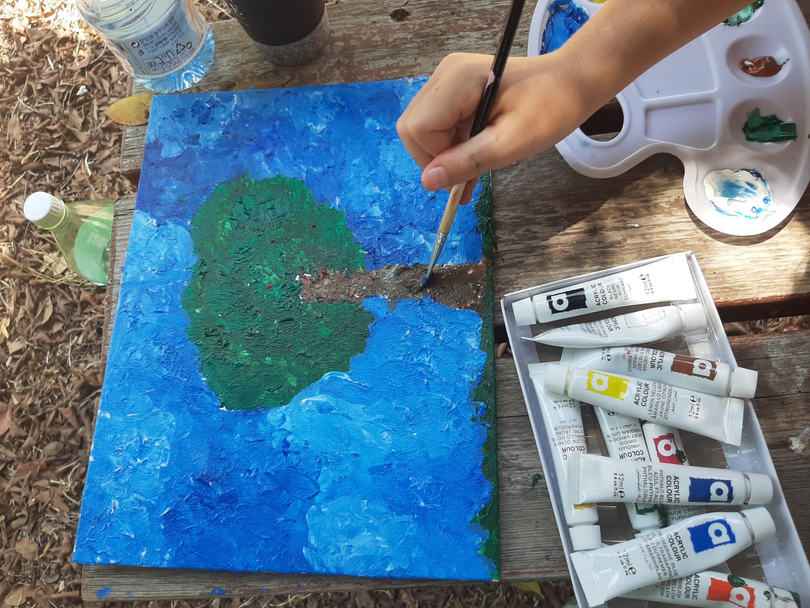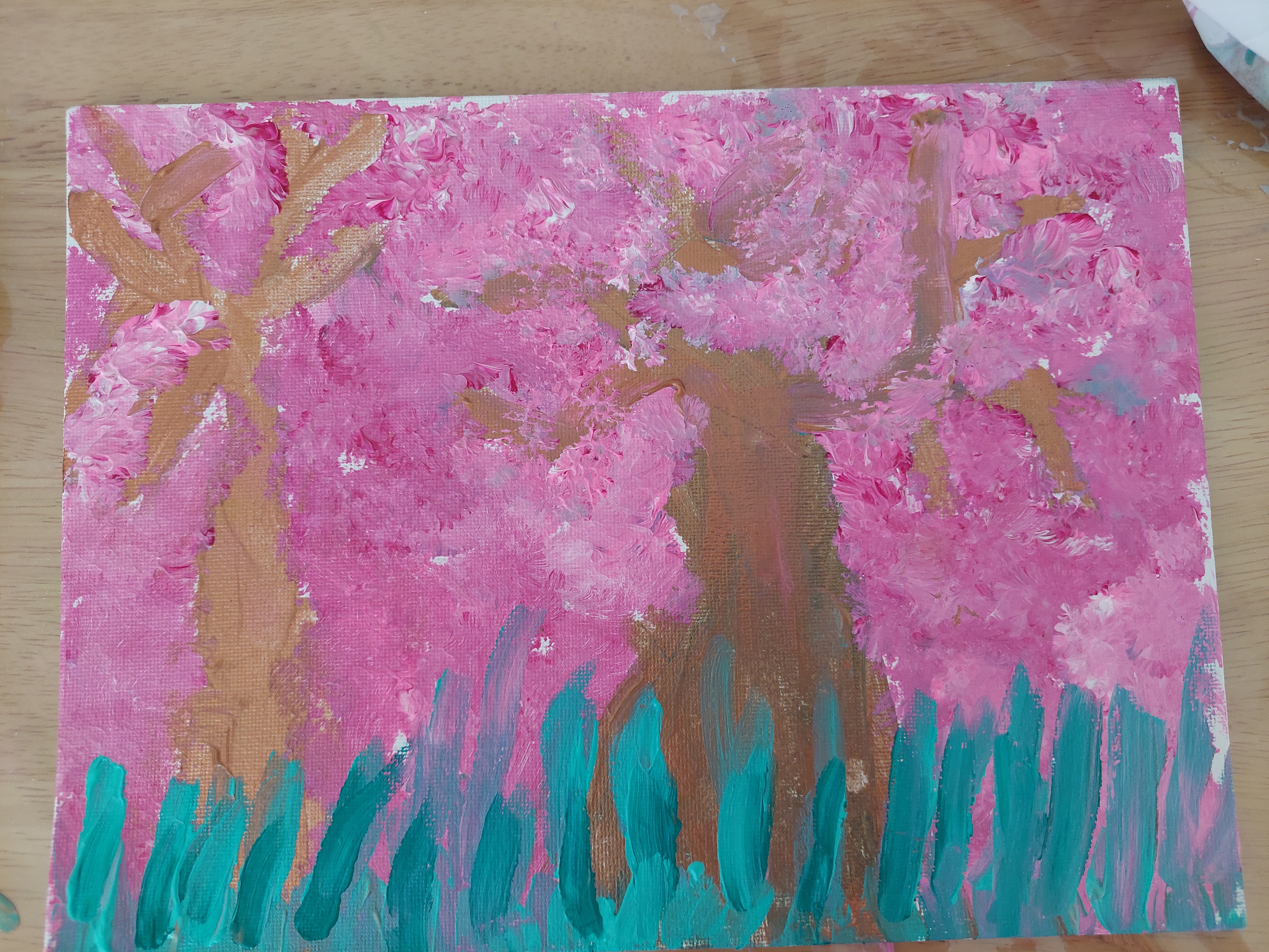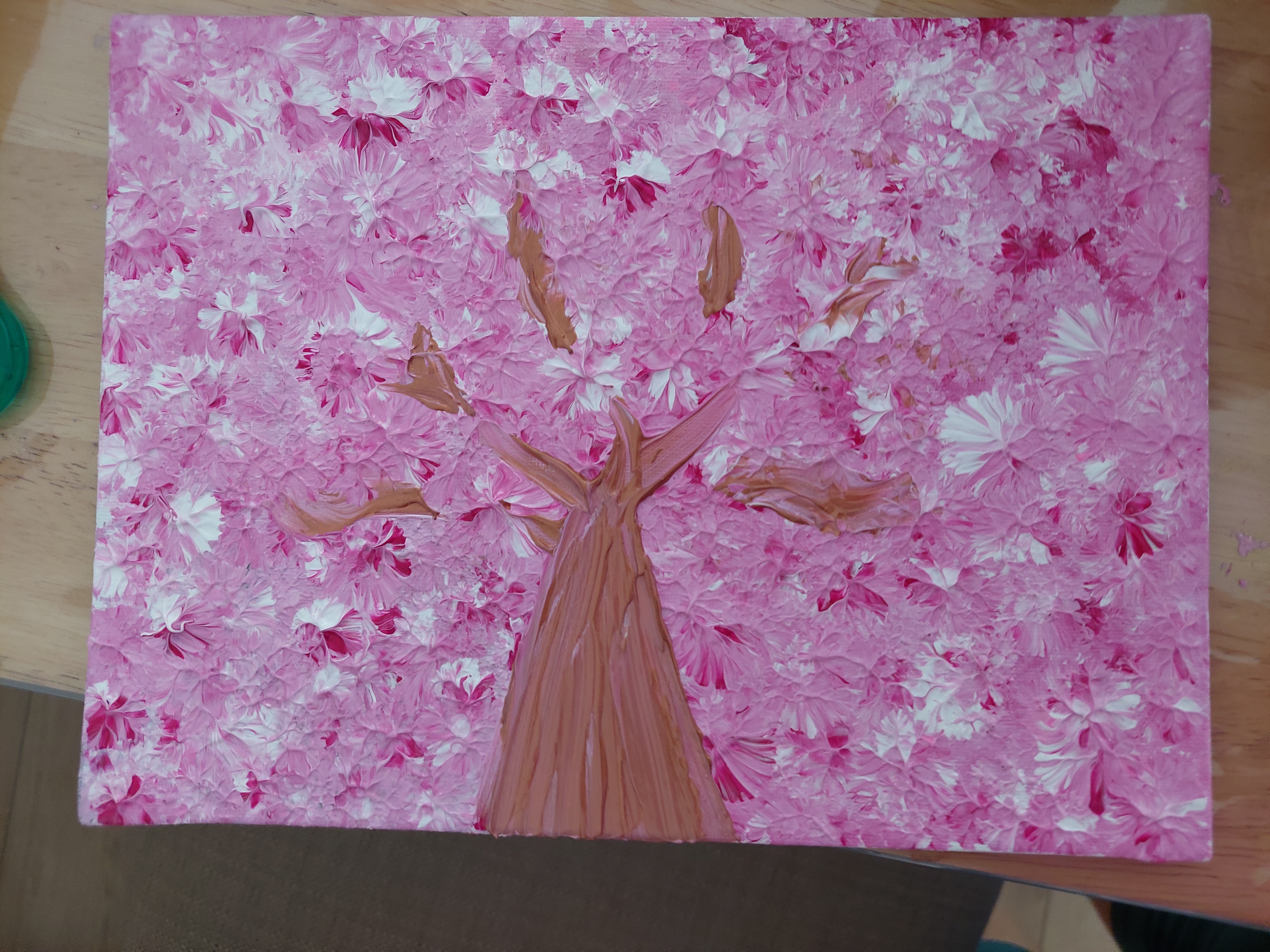 לאחר המשחק הצעתי להן לצייר את עץ הסקורה, עץ פריחת הדובדבן הנפוץ ביפן והוא סמל יפני תרבותי, המופיע רבות באומנות היפנית. הן נהנו לצייר אותו בעזרת אקריליק וספוגים על גבי קנבס.