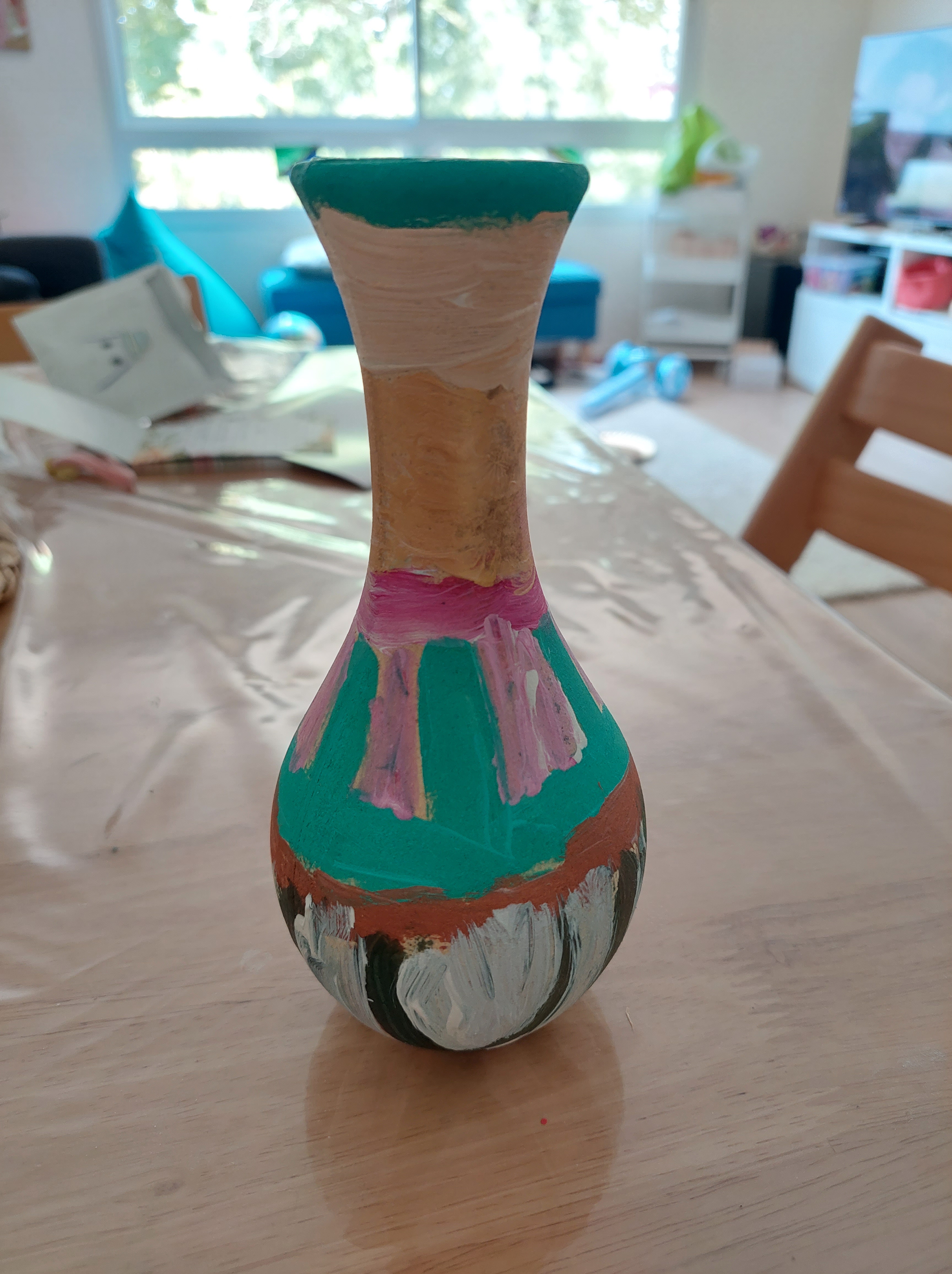 לסיום צבענו באקריליק כדים שקניתי בסגנון אפריקאי.