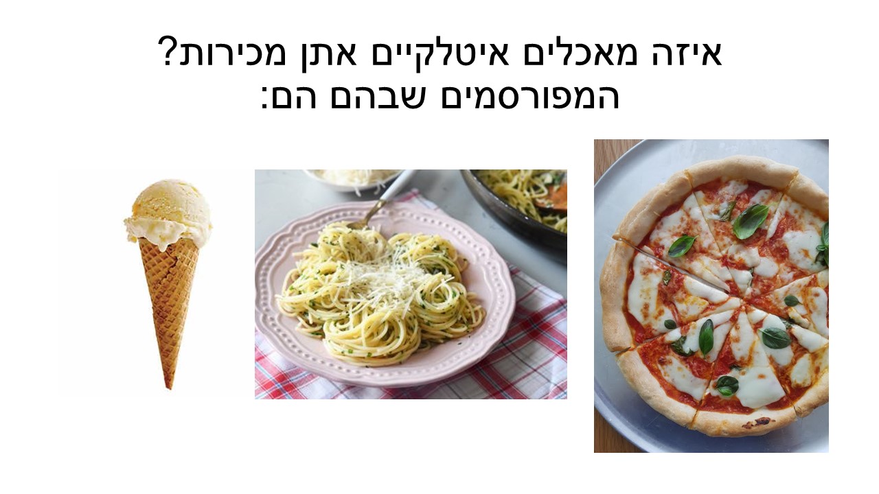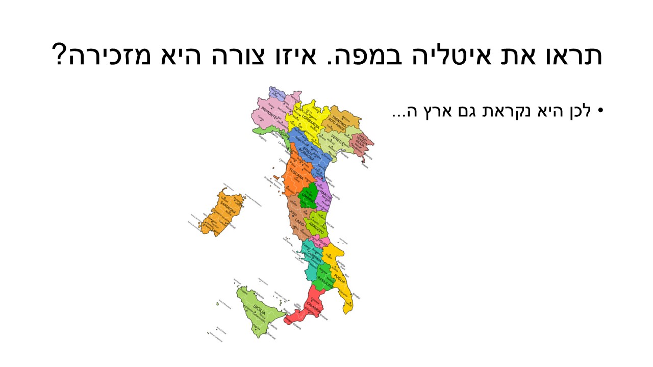 אחרי הכנת הדגל, מציאת המדינה על הגלובוס. הכנתי להן מצגת על איטליה (מצורפת למטה), הצגתי את מפת איטליה שנראית כמו מגף, עיר הבירה של איטליה (רומא), סיפרתי על מקומות מרכזיים – קולוסיאום, קריית הוותיקן, מגדל פיזה, עיר המים – ונציה, אגמים גדולים ועוד… ודיברנו על מאכלים איטלקיים.