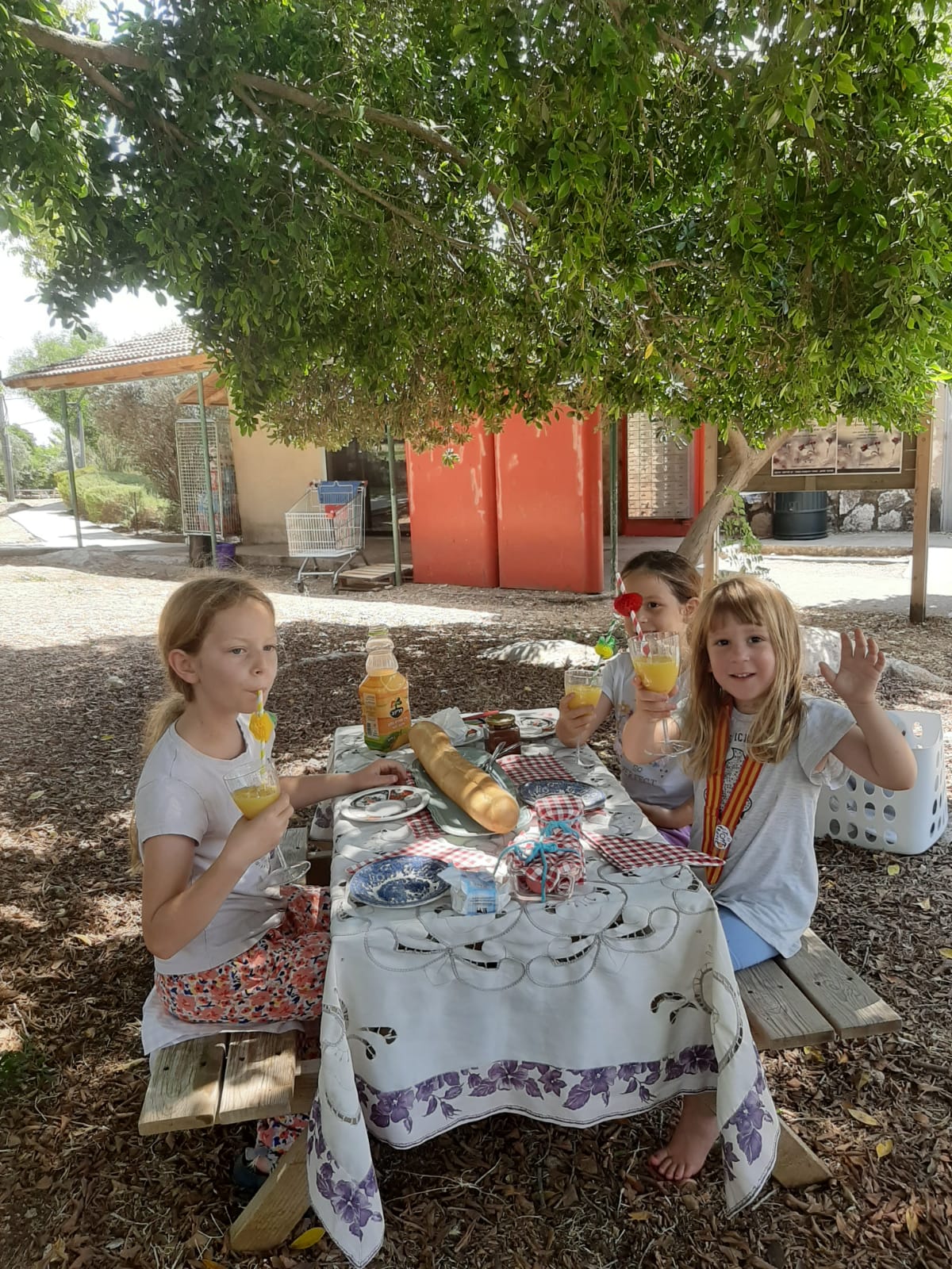 בדשא במושב היא סיפרה להן על גבעת המונמרטר – רובע הציירים בפריז, שם הן ישבו לצייר על קנבס עם פלטות צבעי אקריליק. בזמן שהציורים התייבשו הן נכנסו לצרכנייה וביקשו מהמוכרת (בתיאום מראש מול אמא שלי) באגט ועשו פיקניק (מקור המילה בצרפתית) עם בגטים, מיץ תפוזים וריבה.