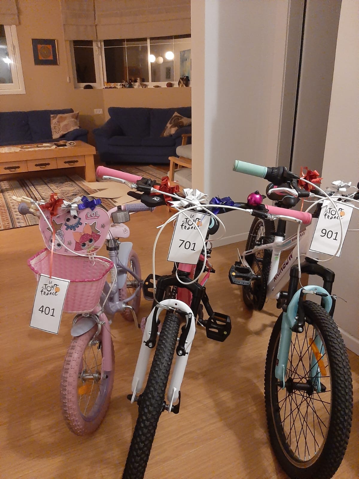 הסבר על הטור דה פראנס, אמא שלי קישטה את האופניים מראש בצבעי הדגל ותגי מספרים. יציאה לסיבוב באופניים (עם שלט של תחילת הטור דה פראנס בכניסה לבית) עד הצרכנייה, שם חיכה להן סרט סיום המסלול. בסיום המסלול הן קיבלו מדליות אישיות.