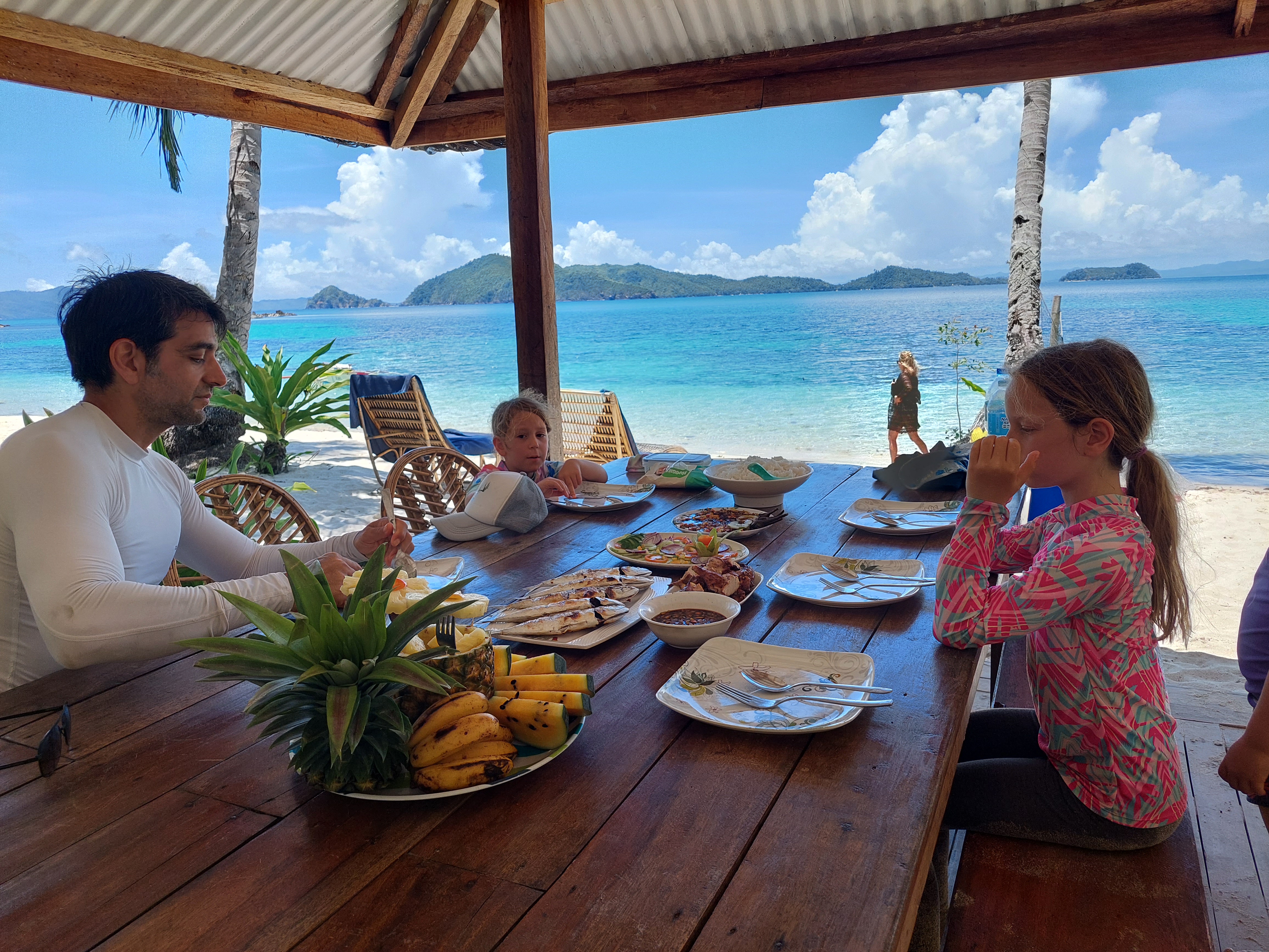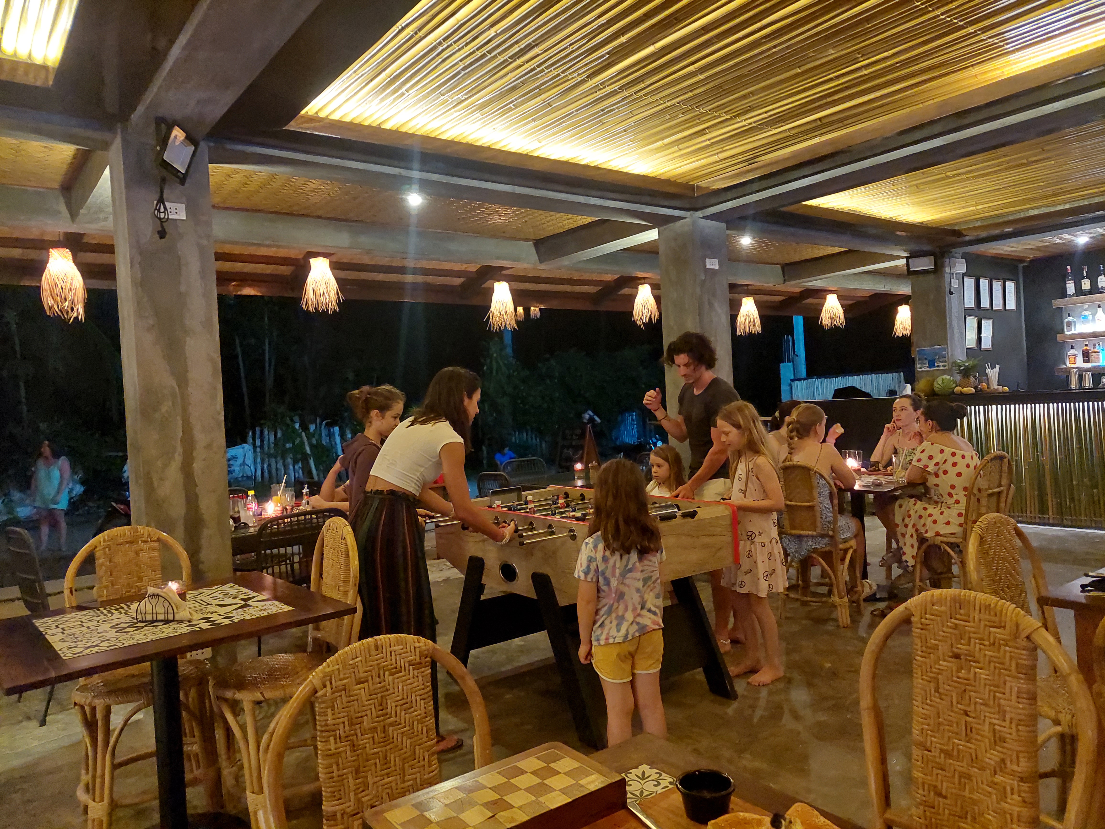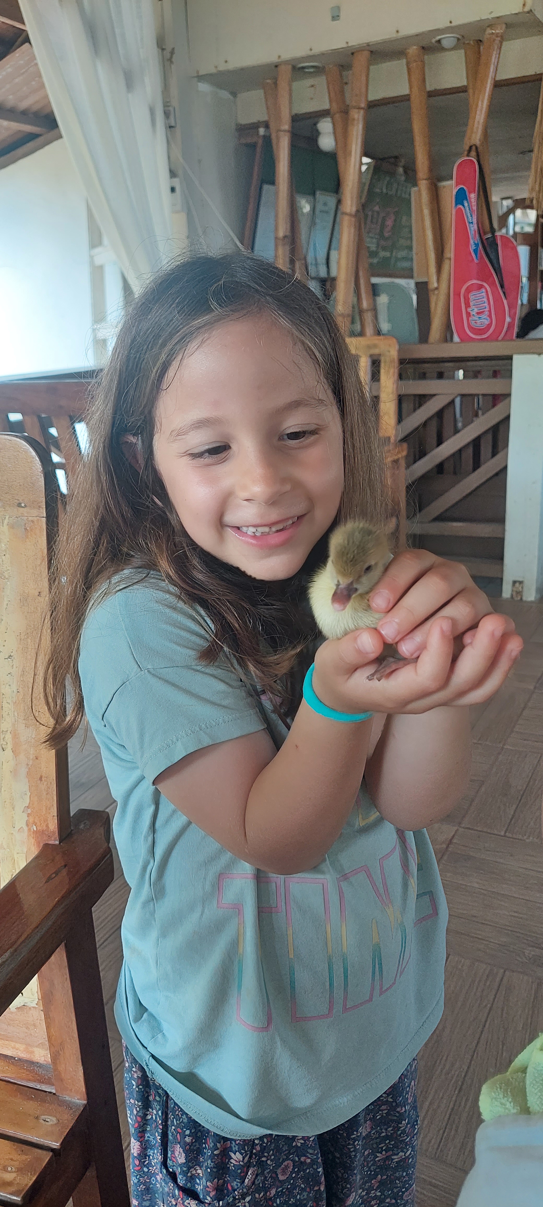עוד מהקסם של המקום… מהחוף אפשר לצאת בסירה לאיים וחופים מהממים נוספים, שנירקולים מעל ריפים יפים, לצד צבי ים וכוכבי ים, טיולים בג'ונגלים מסביב. בחוף יש שקיעות מטריפות. בעיקר בעיקר אנשים פשוט מקסימים ולבביים!! המקום מרגיש מאוד בטוח ונעים, מצד אחד לא רואים בך ארנק מהלך שרק מנסים להוציא ממנו כסף, גם לא נבוכים מקיומך לצידם, הם מחייכים אלינו, מדברים איתנו ושמחים מהביקור שלנו. פגשנו שם אנשים סקרנים, נעימים, נדיבים, שמחים לעזור ושמחים בחלקם. המפגש עם אנשים הוא תמיד מה שהופך את החוויה לעמוקה ומעניינת, בין אם מטיילים נוספים שפגשנו שם ובין אם מקומיים. אחד הדברים שהיו לנו שם הכי משמעותיים ומיוחדים והפכו את החוויה להרבה יותר מדהימה זה היכרות עם משפחה מקסימה ישראלית שחיה שם כבר 5 שנים, שבחרו לחיות חיים בקצב אחר, עם אפשרויות אחרות, ברוגע, בטבע, ברמת חיים גבוהה, בלי להתנצל על כך ליד שכניהם. הם גם בחינוך ביתי והילדים מיד התחברו. בעיקר נוצר חיבור חזק ואוהב עם הבת המהממת שלהם (גם האחים שלה מהממים ומתוקים), ילדה סופר מיוחדת וחכמה, שיודעת להסתדר ולמצוא פתרונות, רגישה ומתוקה עם לב ענק, שמגדלת המון חיות, מבינה את הטבע, את האנשים, והיה חיבור לבבות מטורף… המשפחה הזו פתחה לנו את ליבם וביתם, זכינו לראות צורת חיים אחרת, הם הכירו לנו גם את העיירה וענו על המון שאלות סקרניות. קיבלתי מהם הרבה השראה.