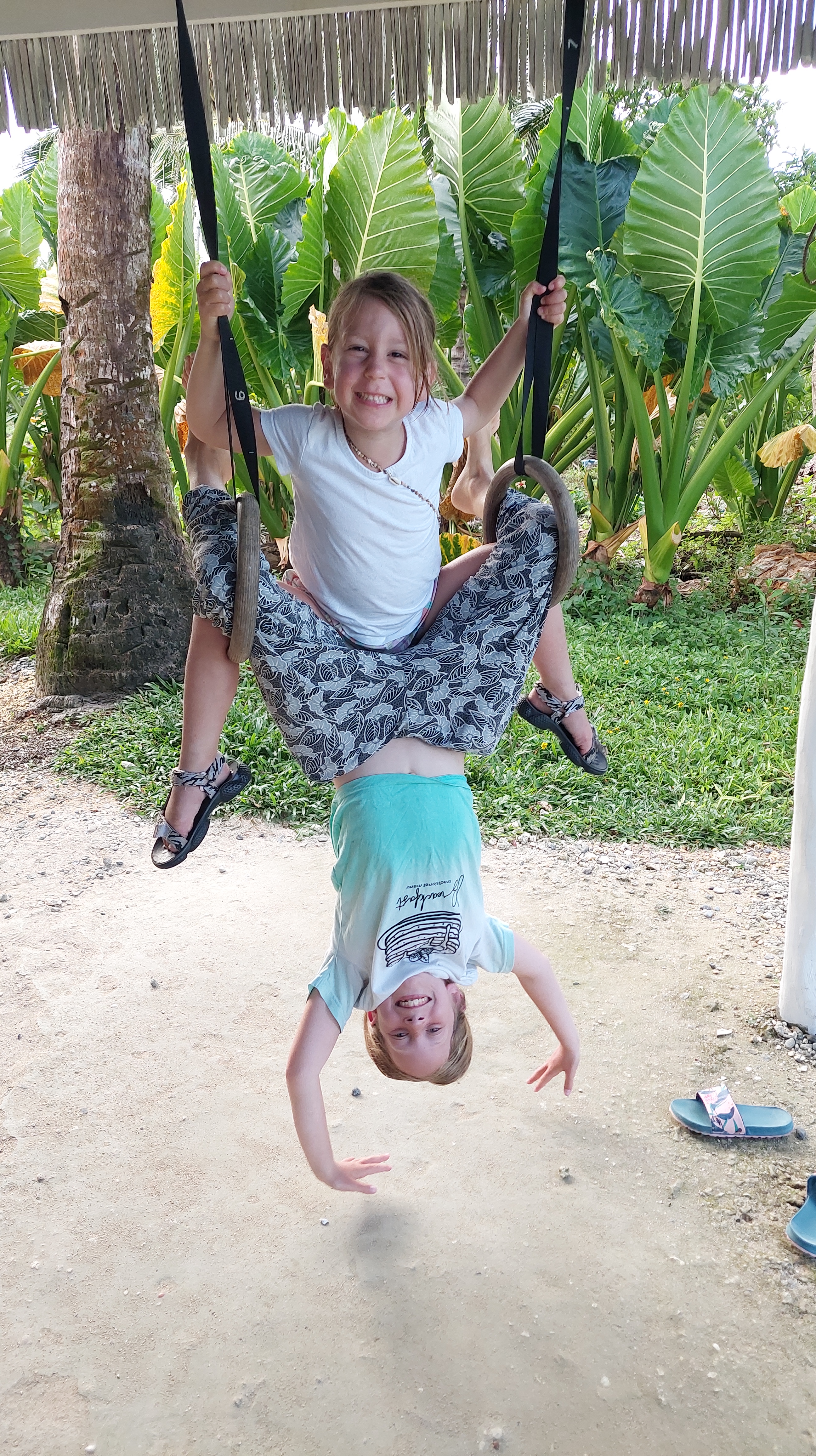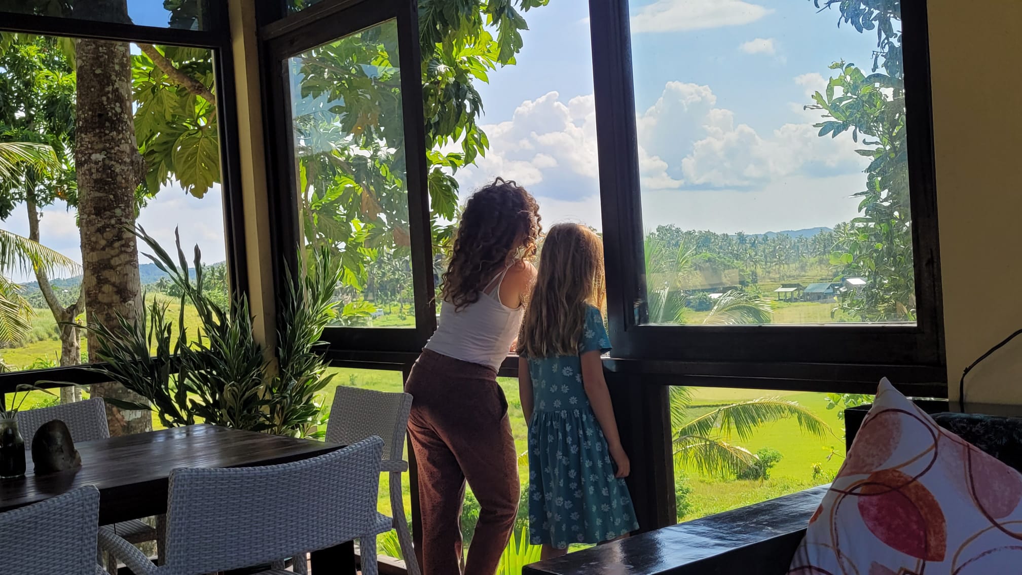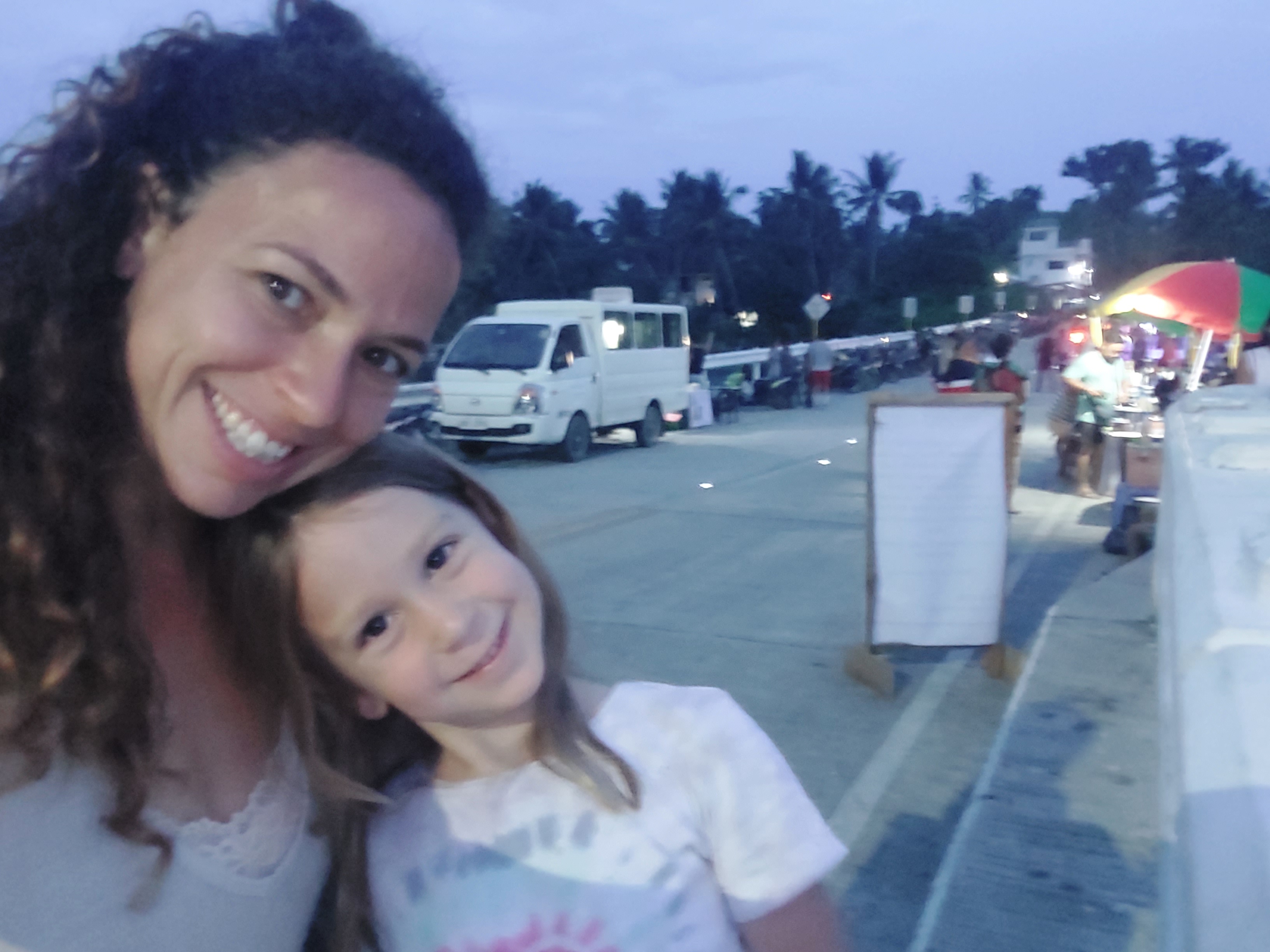 שמחתי לראות את גיא מחייך שם, כי הוא אוהב את ה"ווייב" התרמילאי, הצעיר, התוסס, המערבי. לי זה היה יותר מידיי. ערב ראשון ישנו במלון זמני, לילה אחד רק עד שיתפנה המלון שהזמנו, כשהלכנו ברחוב מהמלון הראשון, האנשים לא חייכו, לא הסתכלו עלינו בכלל ואם כן במבט עוין, אחרי פורט ברטון התבאסתי מזה, אחד הדברים שאני אוהבת זה הקשר והאינטראקציה עם המקומיים. הלכנו לרחוב הראשי לאכול, רחוב מלא חיים, מלא ברים ומסעדות, ההיפך המוחלט מהמקום שבאנו ממנו, בכל מסעדה שנייה יש הופעה חיה או מופע רחוב, עצרנו ונהננו מהמוזיקה. חשבתי שזה בסדר עבורי להיות גם במקום כזה שבוע, יותר מערבי ומתויר, פחות אותנטי. למחרת עברנו למלון שלנו שהתגלה כבית. המלון בבעלות ישראלי (שביקר את משפחתו בישראל כששהינו שם) ואשתו הפיליפינית המהממת שחיה בארץ הרבה שנים ויודעת עברית שוטף ומאוד מחוברת למנטליות הישראלית. קיבלנו שם חדר ענק, שתי מיטות זוגיות וספה רחבה שהפכנו למיטה, המון מרחב, שירותים ומקלחת גדולים, מרפסת ענקית מול נוף מרהיב ירוק, מושלם ליוגה, ובריכה מושלמת מול הנוף. אין מילים. והאוכל במסעדת המלון… וואוו!! חומוס שיכול להתחרות בחומוסיות הטובות בארץ. החומוס סידר אותנו מבחינה תזונתית כי הילדות הבררניות עפו על החומוס ואכלו 2 ארוחות ביום חומוס. ואני גם נהנתי מזה מאוד. המלון היה ממוקם במרחק טוב מהרחוב המרכזי והתוסס, מספיק קרוב כדי שיהיה נוח להגיע אליו בטרייסיקל (סוג של טוקטוק, אופנוע שהלבישו עליו כמו כרכרה שיש מקום לכולנו וככה מתניידים באי), ומספיק רחוק כדי שנהנה מהשקט וממקומיים מקסימים סביבנו, ממש לא דומה למה שחוויתי בלילה הראשון במלון הקודם. באזור של המלון המקומיים היו נחמדים ויצרו קשר, היה נחמד גם להציץ לבית הספר שלהם שממש סמוך למלון. הילדות הרגישו בבית, הכירו את הצוות והיה להן נעים ונוח במלון וגם לנו.