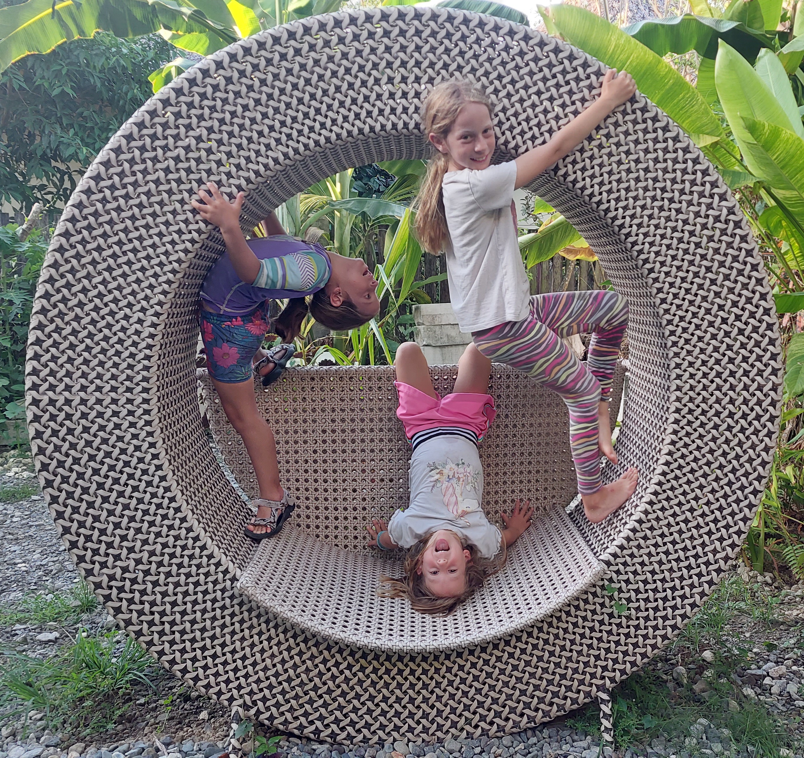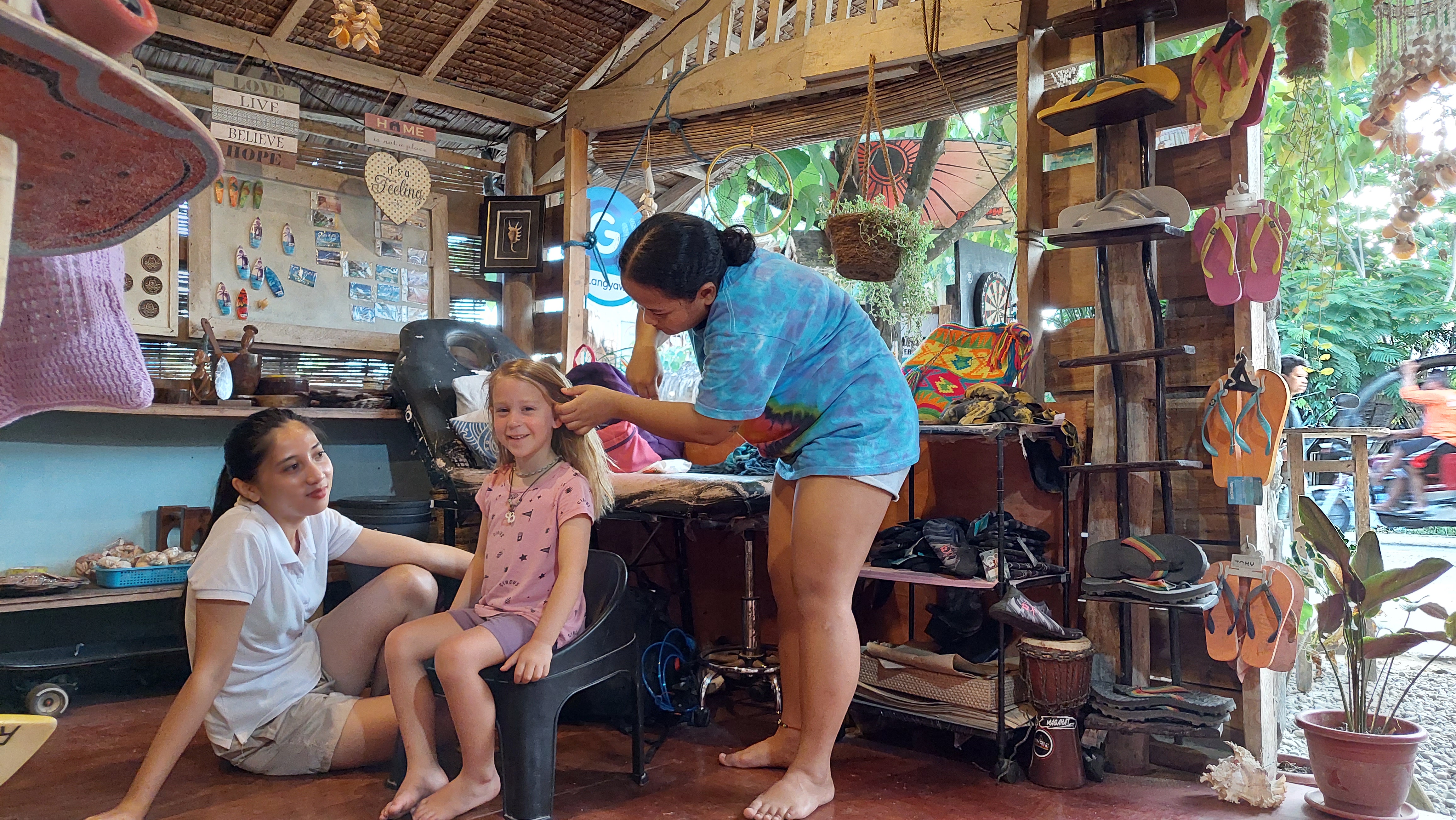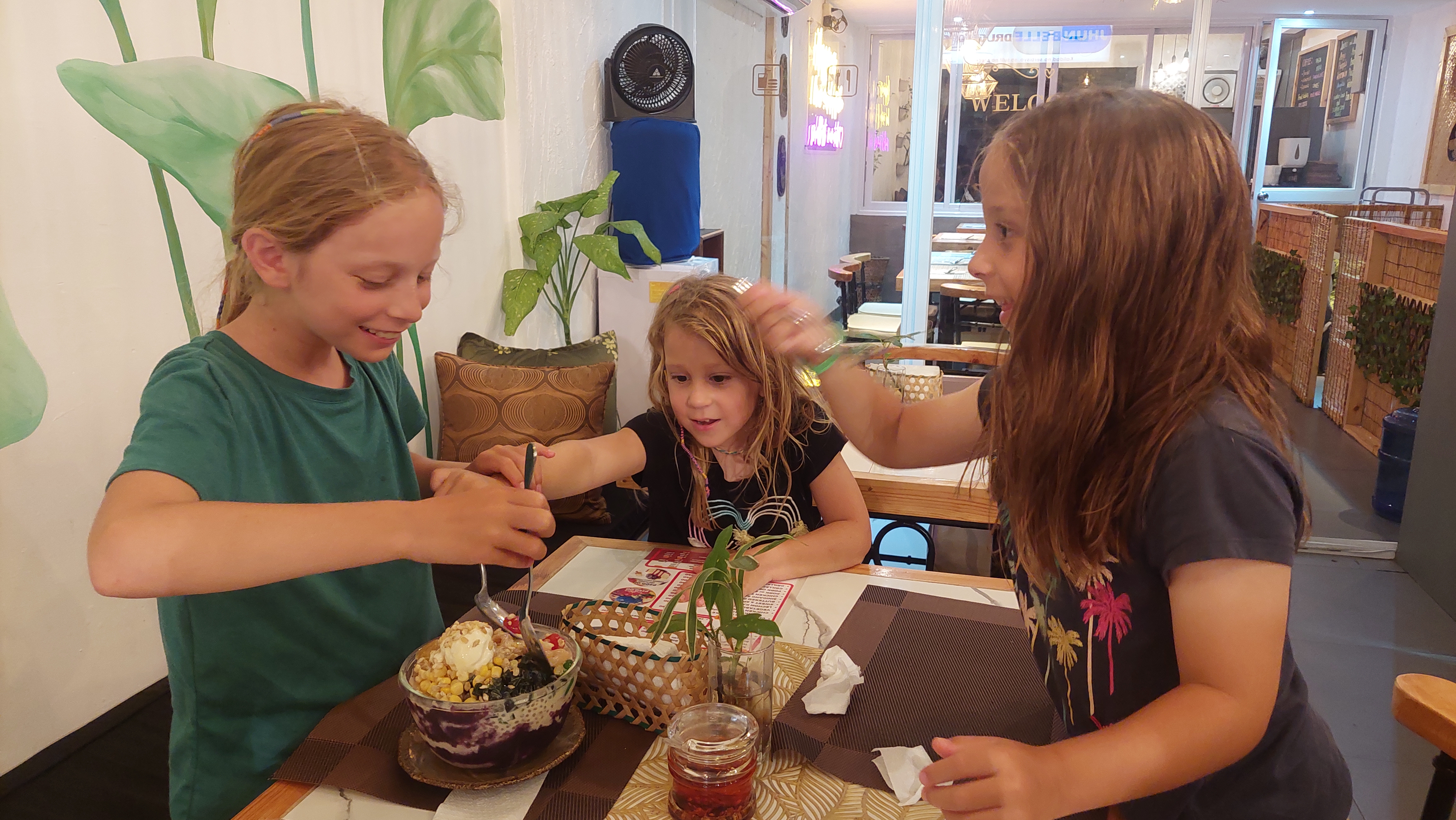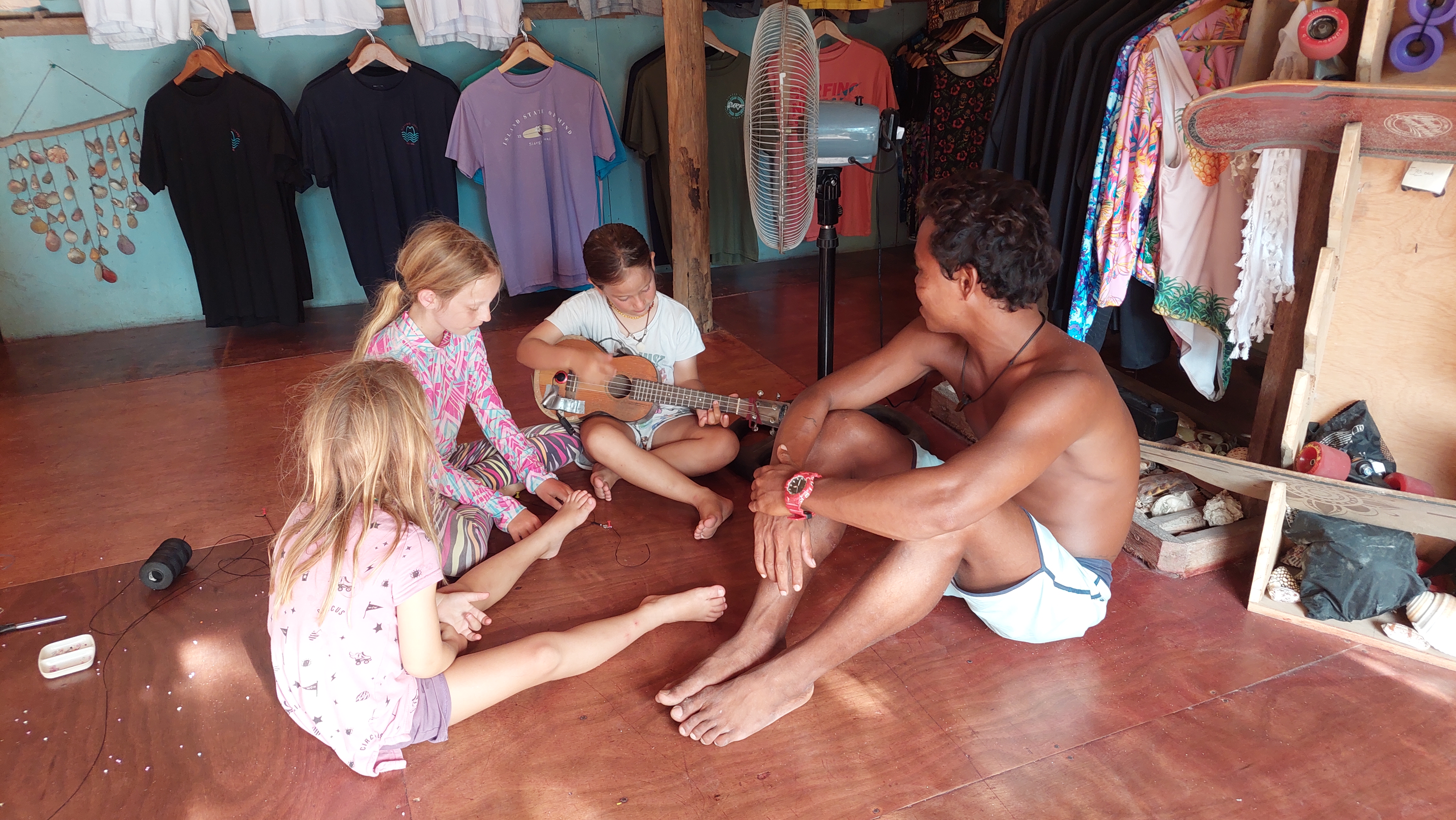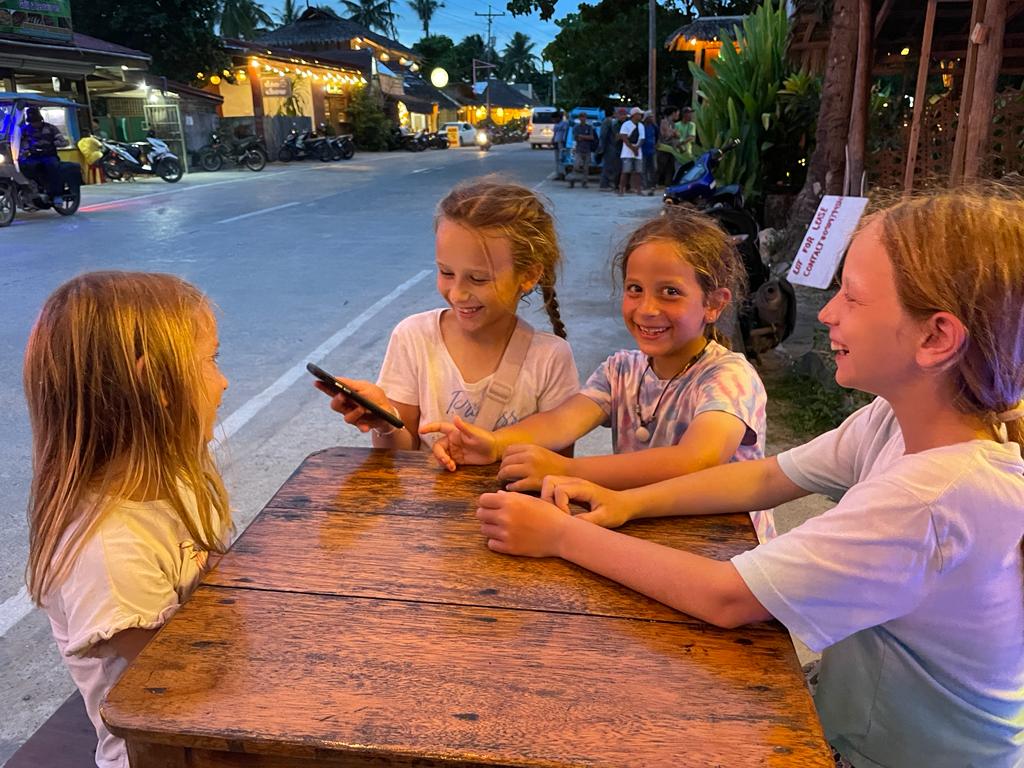 והחיבור למקומיים, למדריכי הגלישה המדהימים שאני עדיין בקשר איתם, לעובדי המלון, המסעדות, אפילו נהגי הטרייסיקל, העובדת במסעדה שעברנו בה בדרך והייתה רצה לחבק ולנשק את הילדות, כולם כבר זיהו אותנו ואנחנו הרגשנו חלק… הרגשנו בית… הרגשנו אהובות ומחוברות. אנשים שם עם לב פתוח, כל אחד שאני רק שואלת לשמו מספר ומשתף על חייו, שואל, מתעניין, פותח את ליבו וביתו. הרגשנו חיבור אמיתי. גם לתרמילאים המהממים שהכרנו, שלקחו את הילדות לאכול קינוח מקומי, שיחקו איתן, דיברו איתן, התעניינו, כולנו הסתדרנו כל כך טוב ביחד. ובשישי הייתה קבלת שבת משותפת ומרגשת.