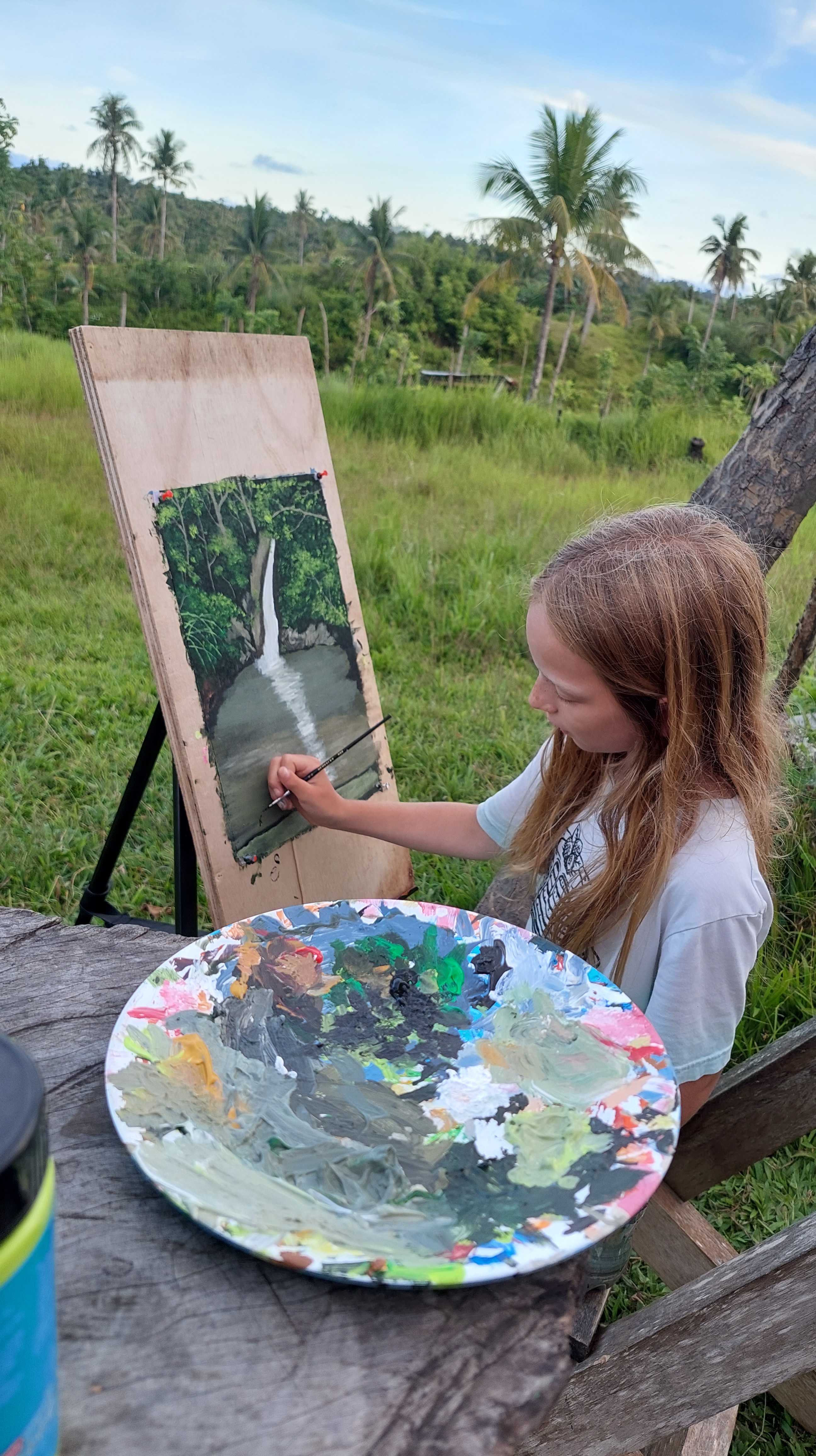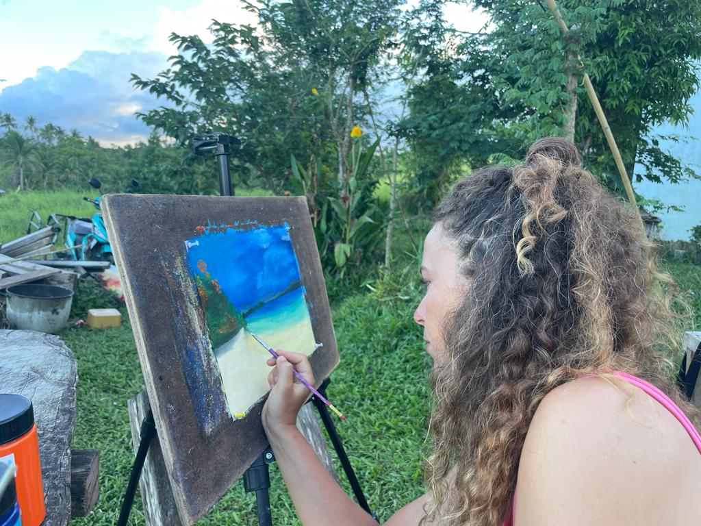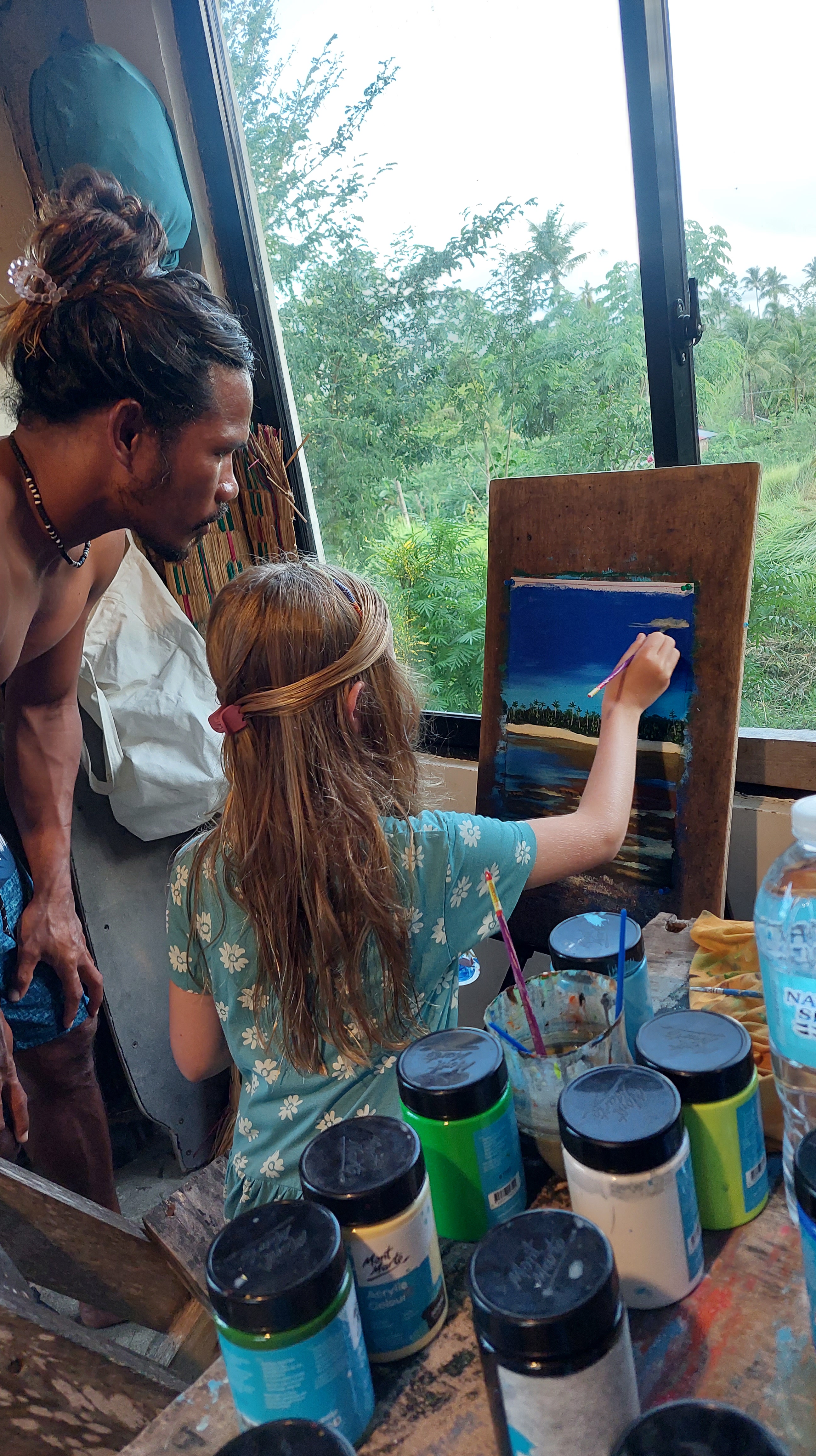 בילינו לא מעט ימים גם בהכנת תכשיטים בחנות קטנה ומקסימה, עשינו שיעורי ציור מדהימים בבית של אחד ממדריכי הגלישה שגר במקום הכי פסטורלי ומטריף שראיתי, והוא אמן מטורף, ומעבר לזה הוא מורה ממש ממש טוב לציור. אני ציירתי ציור אחד, בדייט עם חברה… שזה היה ממש כיף, לצאת לדייט אמהות. אבל הבנתי שציור זה פחות הקטע שלי, אז אלה הייתה באה לצייר אצלו ואני הייתי נהנית מהשקט, הנופים, והחברה הטובה. המקום הכי מרגיע שהייתי בו.