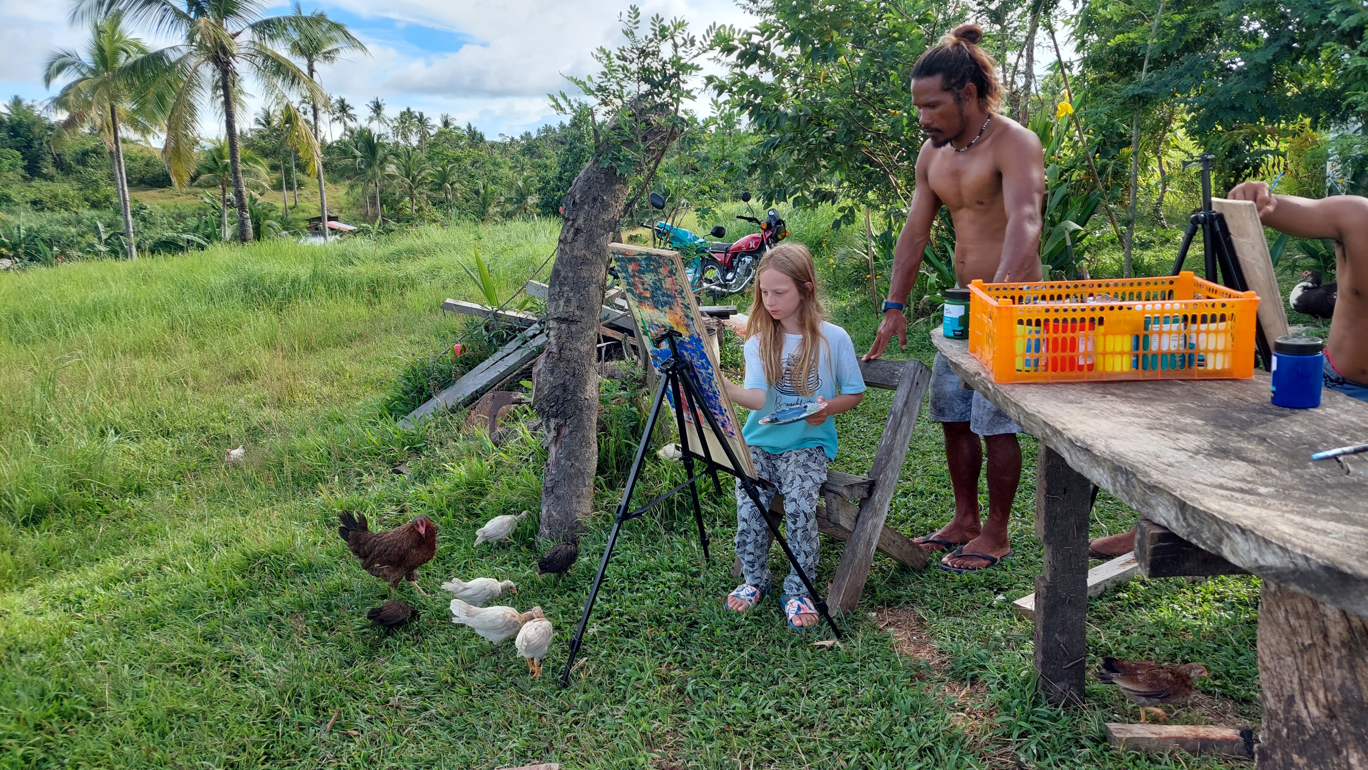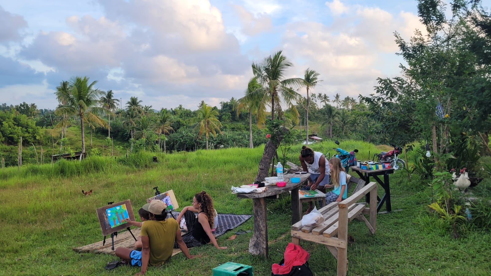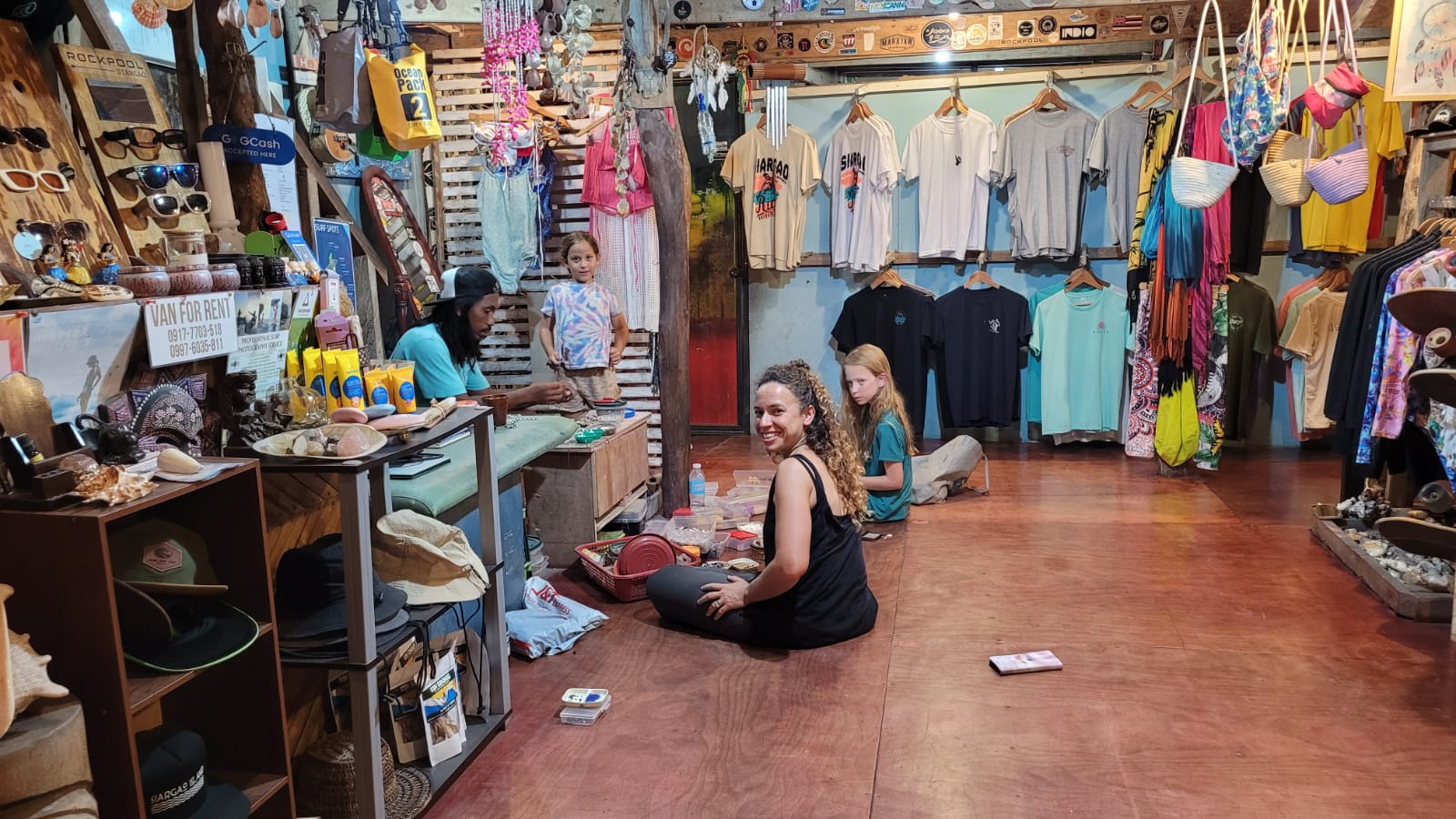 בילינו לא מעט ימים גם בהכנת תכשיטים בחנות קטנה ומקסימה, עשינו שיעורי ציור מדהימים בבית של אחד ממדריכי הגלישה שגר במקום הכי פסטורלי ומטריף שראיתי, והוא אמן מטורף, ומעבר לזה הוא מורה ממש ממש טוב לציור. אני ציירתי ציור אחד, בדייט עם חברה… שזה היה ממש כיף, לצאת לדייט אמהות. אבל הבנתי שציור זה פחות הקטע שלי, אז אלה הייתה באה לצייר אצלו ואני הייתי נהנית מהשקט, הנופים, והחברה הטובה. המקום הכי מרגיע שהייתי בו.