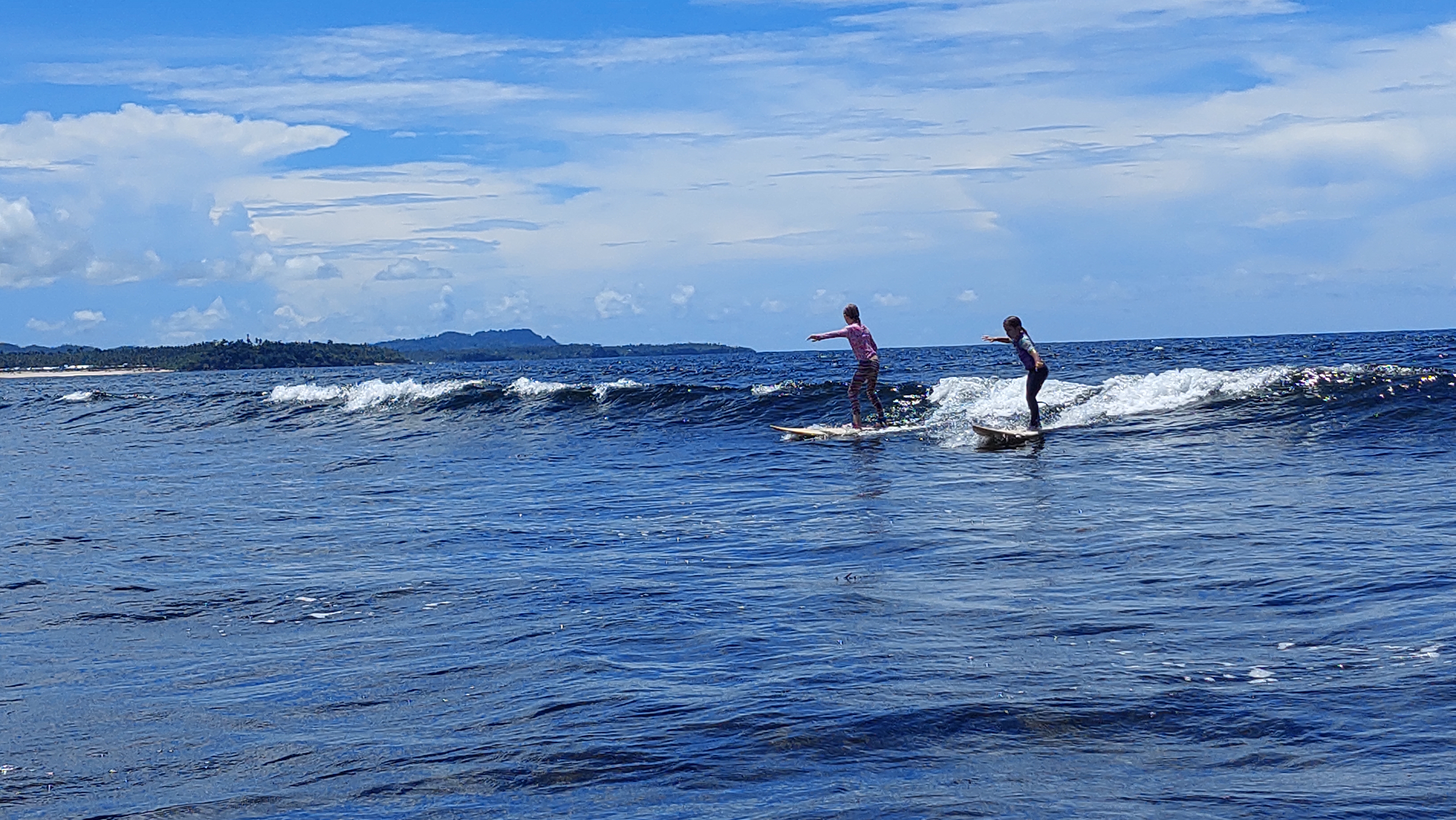 ובכלל הבנתי כמה מה שחשוב לי בטיול, מה שמרגש אותי, שמושך אותי, זה לא ללכת לראות נקודות תיירותיות יפות שלוקחים אותי בואן או בסירה, זה הדברים שקורים בדרך, בלי כוונה, זה הטיולים עם האופנוע בדרך לספוט גלישה כשרואים מקומיים מתנהלים בחיי היומיום, זה חופים ריקים מלאים בקסם כשהולכים לגלוש בספוט מבודד, זה אי מלא בציפורים ומפלים וגלים בצבע טורקיז שמתנפצים עליו כששטים לצד האי בסירה כדי לגלוש, זה ביקור בבתים מקומיים שמארחים אותך בדרך לגלישה, זה אוכל מקומי בגרושים שעוברים למכור בין הבתים כשהולכים לגלוש ב6 בבוקר. אלה הדברים שמרגשים אותי, שמשמחים אותי, שלשמם אני מטיילת. ועל כל זה שירגאו ענתה לי.