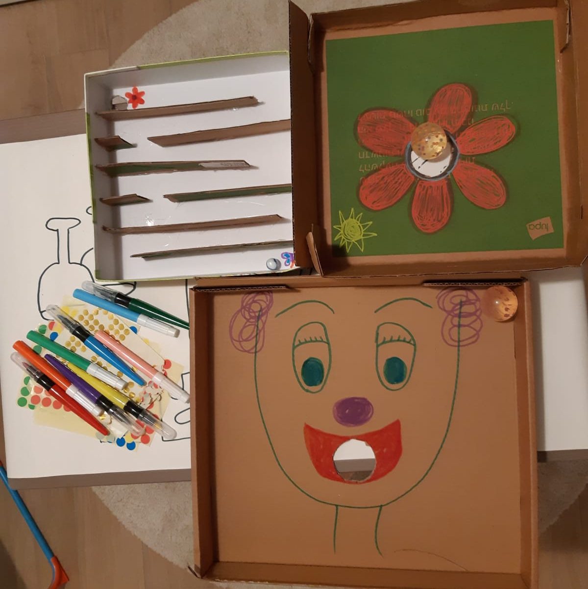 כיף עם ארגזים: תביאו לילדים ארגזים ותגלו עולם. בין אם ארגז ענק (של מקרר) שהופך לבית פיות, שיוצרים לו דלת, חלונות, צובעים בגואש, מקשטים וכו'… בין אם ארגזים בינוניים שהופכים למטוסים, רכבות וכו'… או ארגזים שמתחברים יחדיו למחנה אחד גדול. תביאו להם ארגזים, דבק, צבעים, מסקינגטייפ, ותראו את הפלא שקורה.